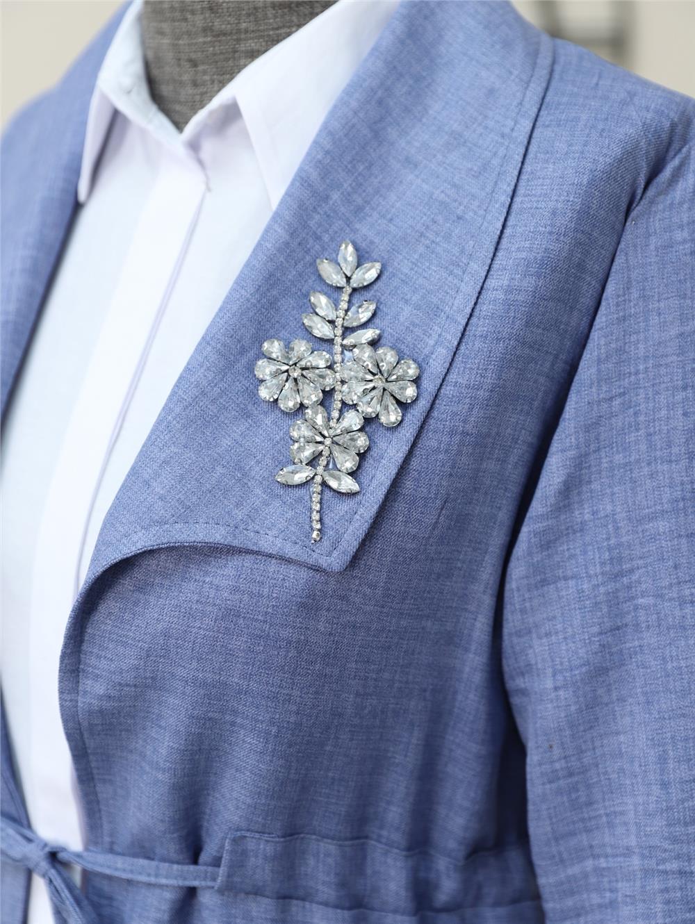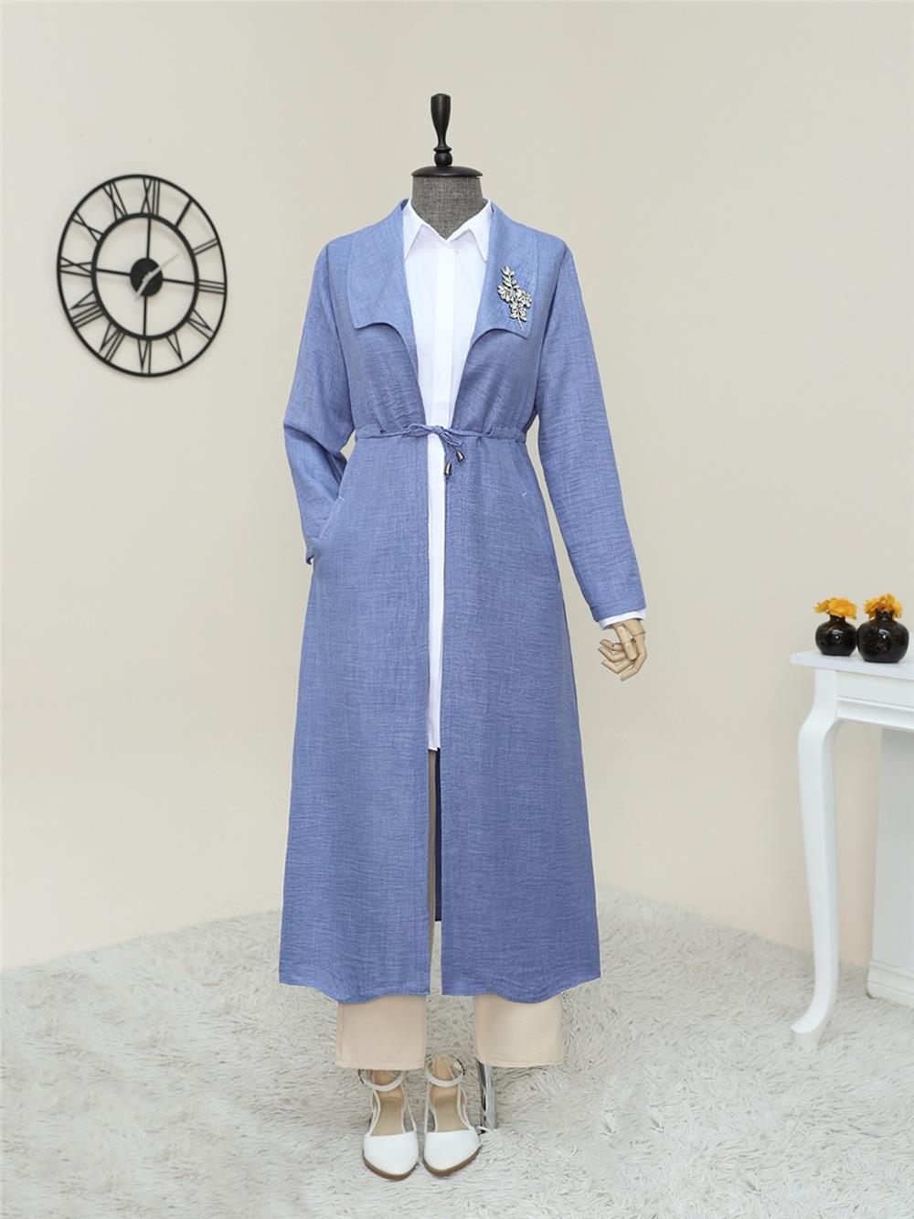 Stone Embroidered Gathered Linen Cap - Blue (186-671-R31)