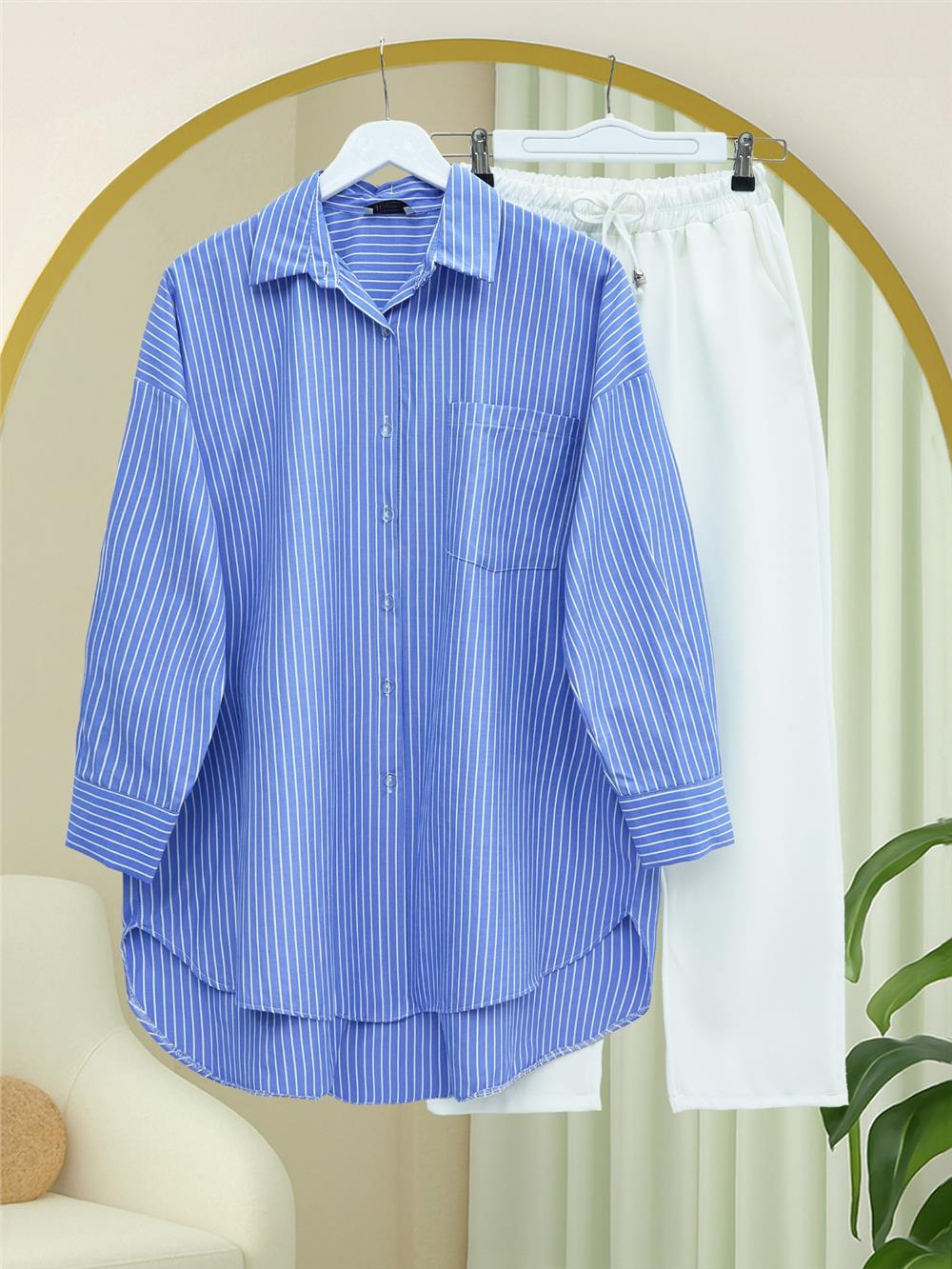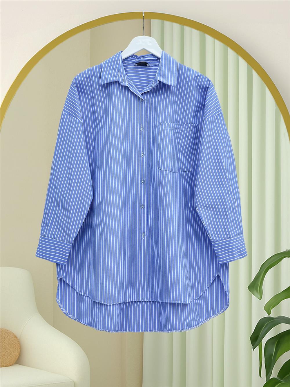 Tek Cepli Çizgili Gömlek -Mavi (223-6242-R31)