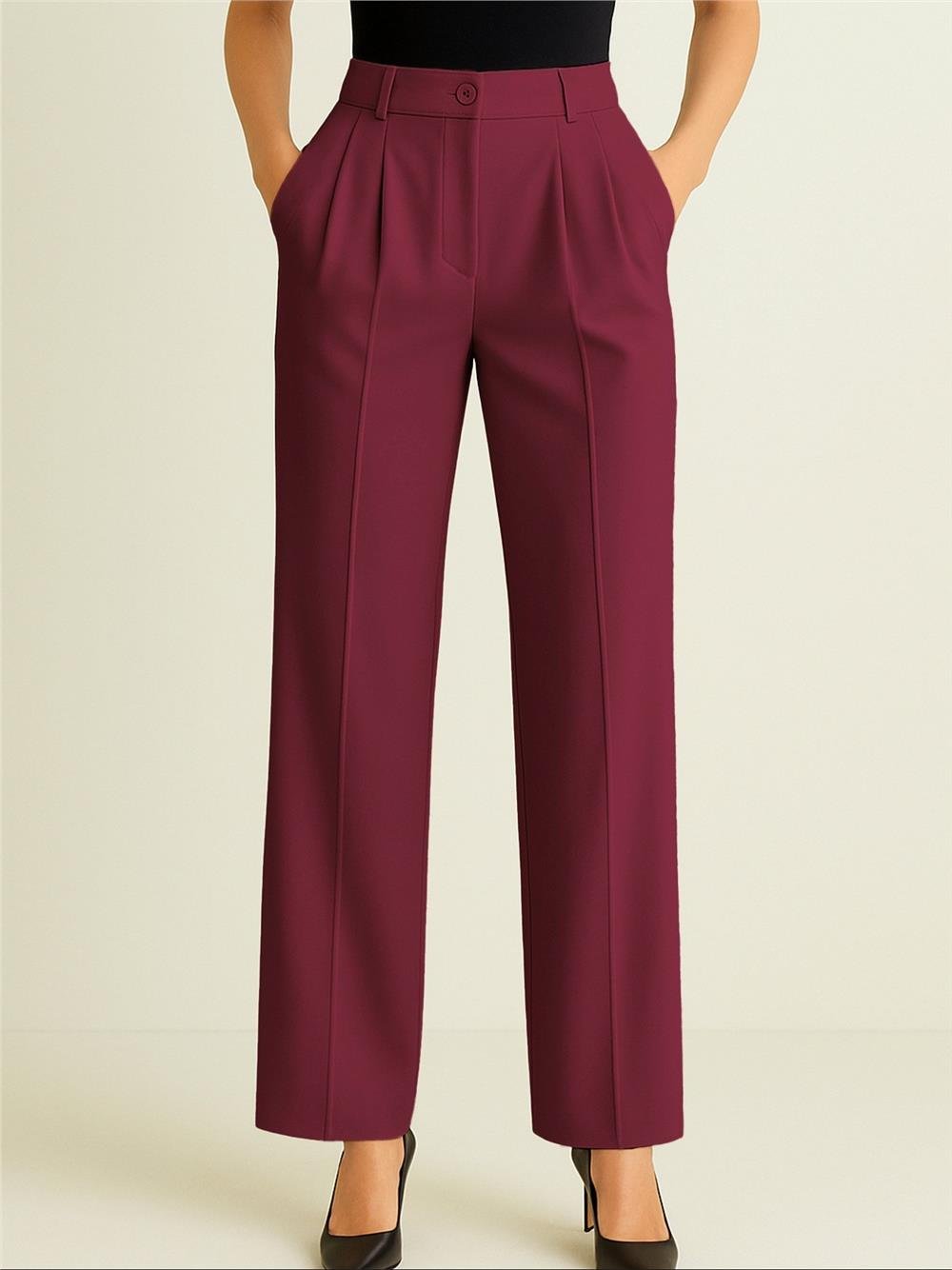 Tek Düğmeli Önü Katlama Detaylı Cepli Pantolon -Bordo (400-10056-R04)