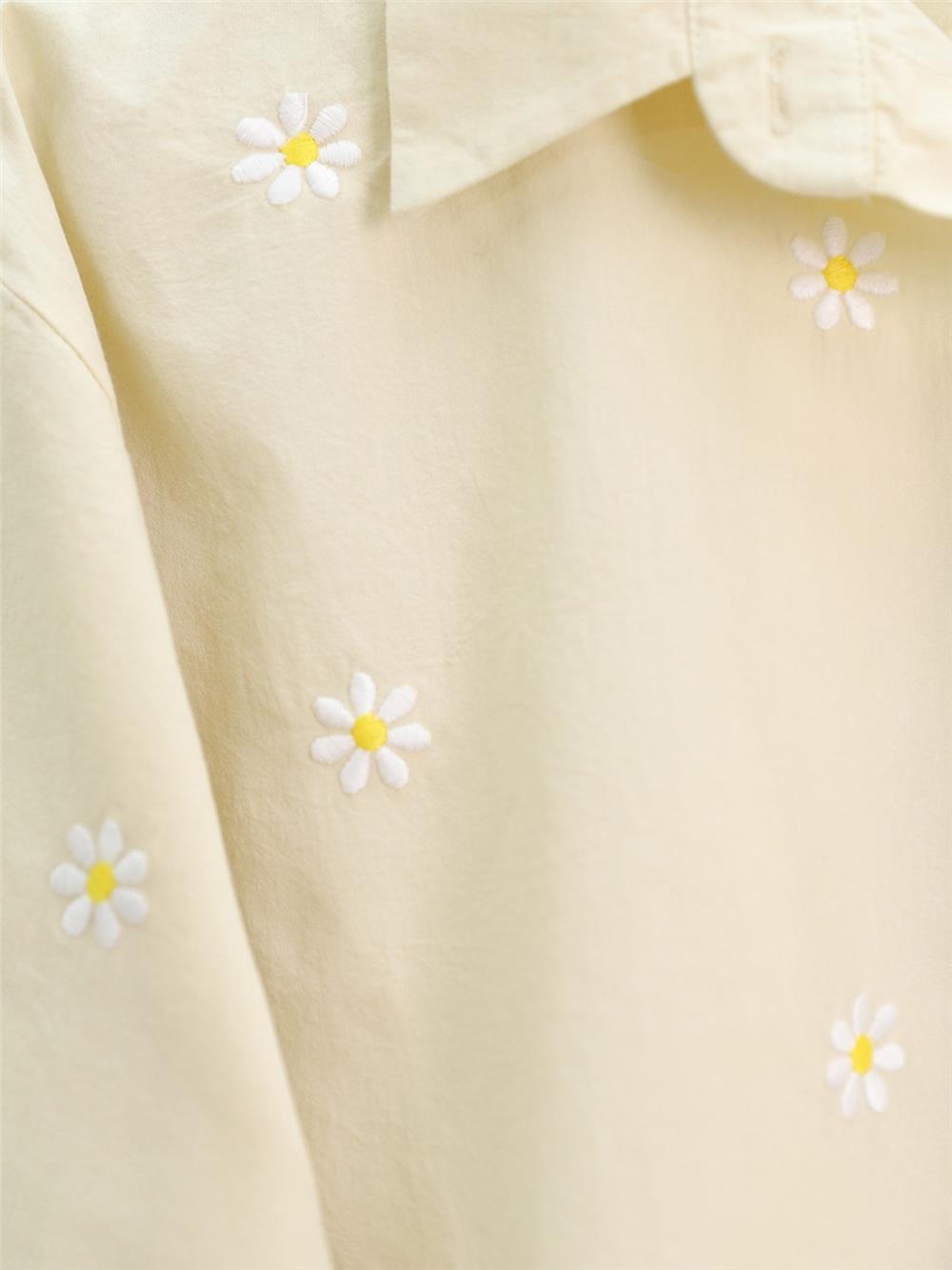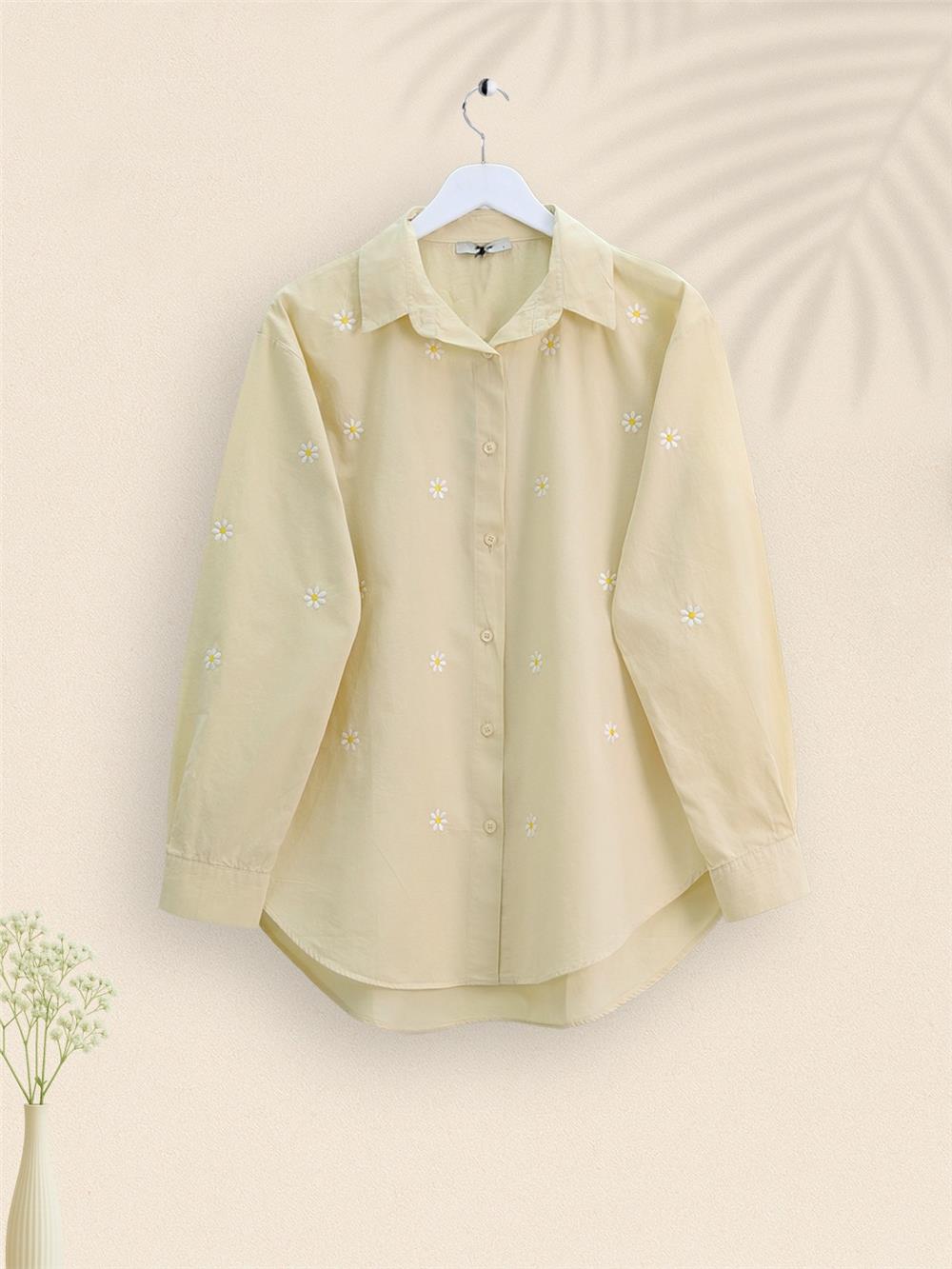 Tek Papatya Nakışlı Arkası Uzun Gömlek -Bej (403-10052-R56)