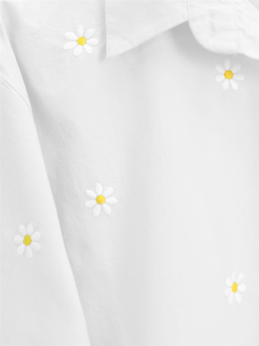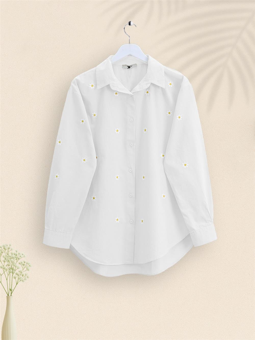 Tek Papatya Nakışlı Arkası Uzun Gömlek -Beyaz (403-10052-R02)