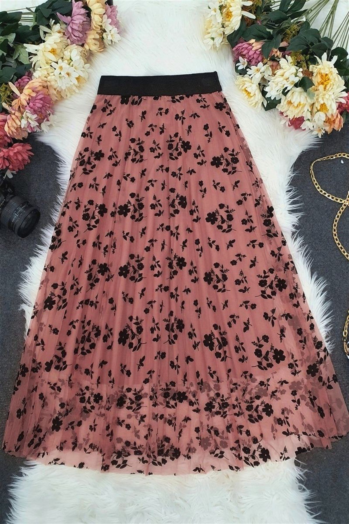 Beli lastikli ve astarlı, tülü çiçek desenli olan etek modelimiz yeni sezonun en çok tercih edilen etek modellerimiz içerisinde yer almakta.