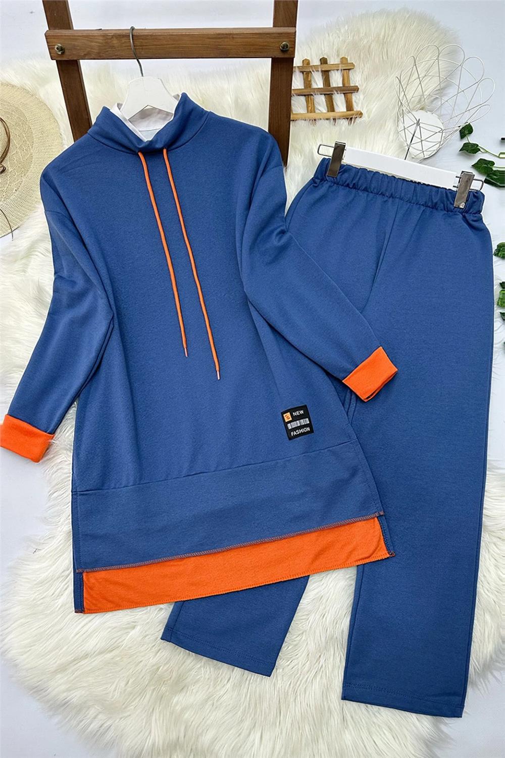 Turuncu Detaylı İki İp Penye İkili Takım -İndigo (349-4074-R21)