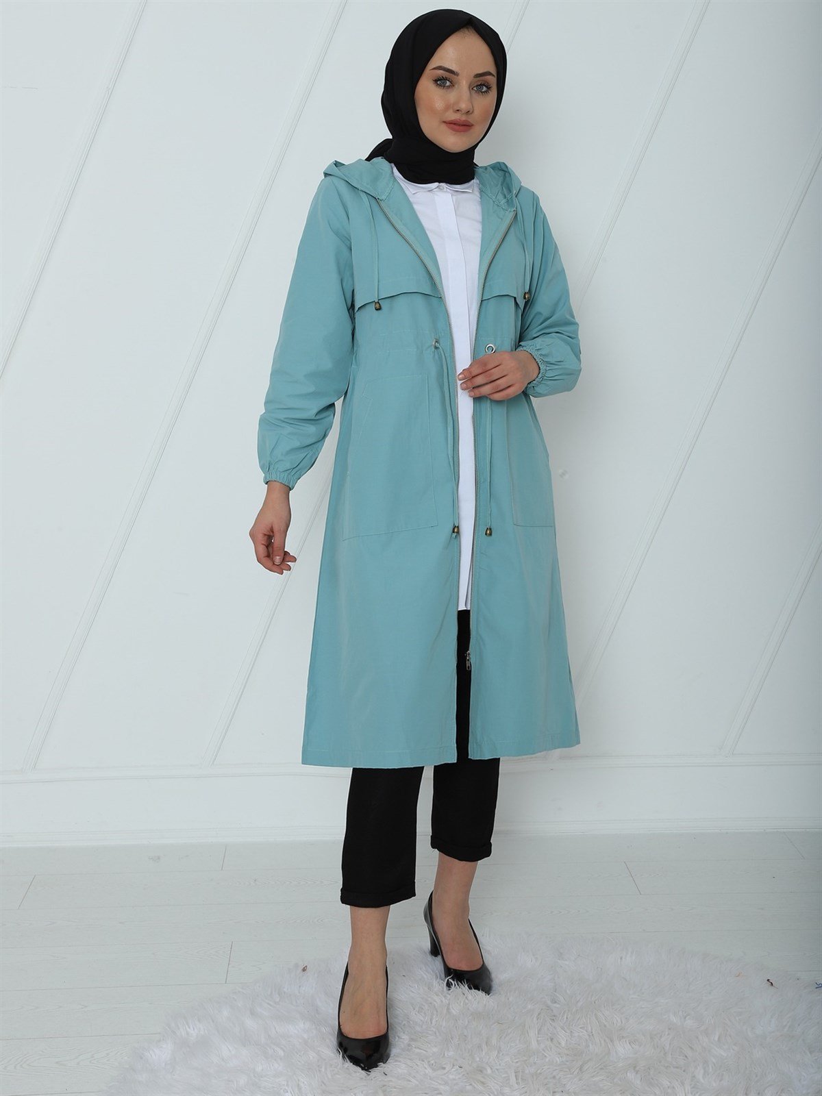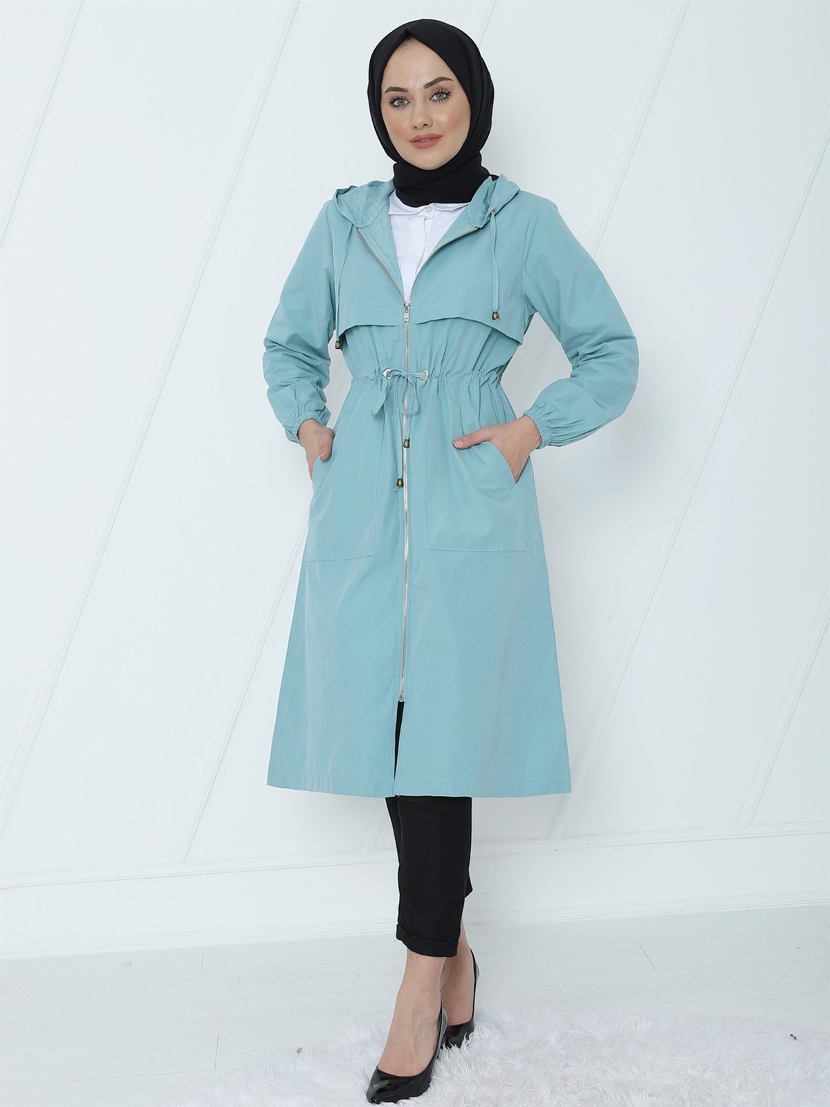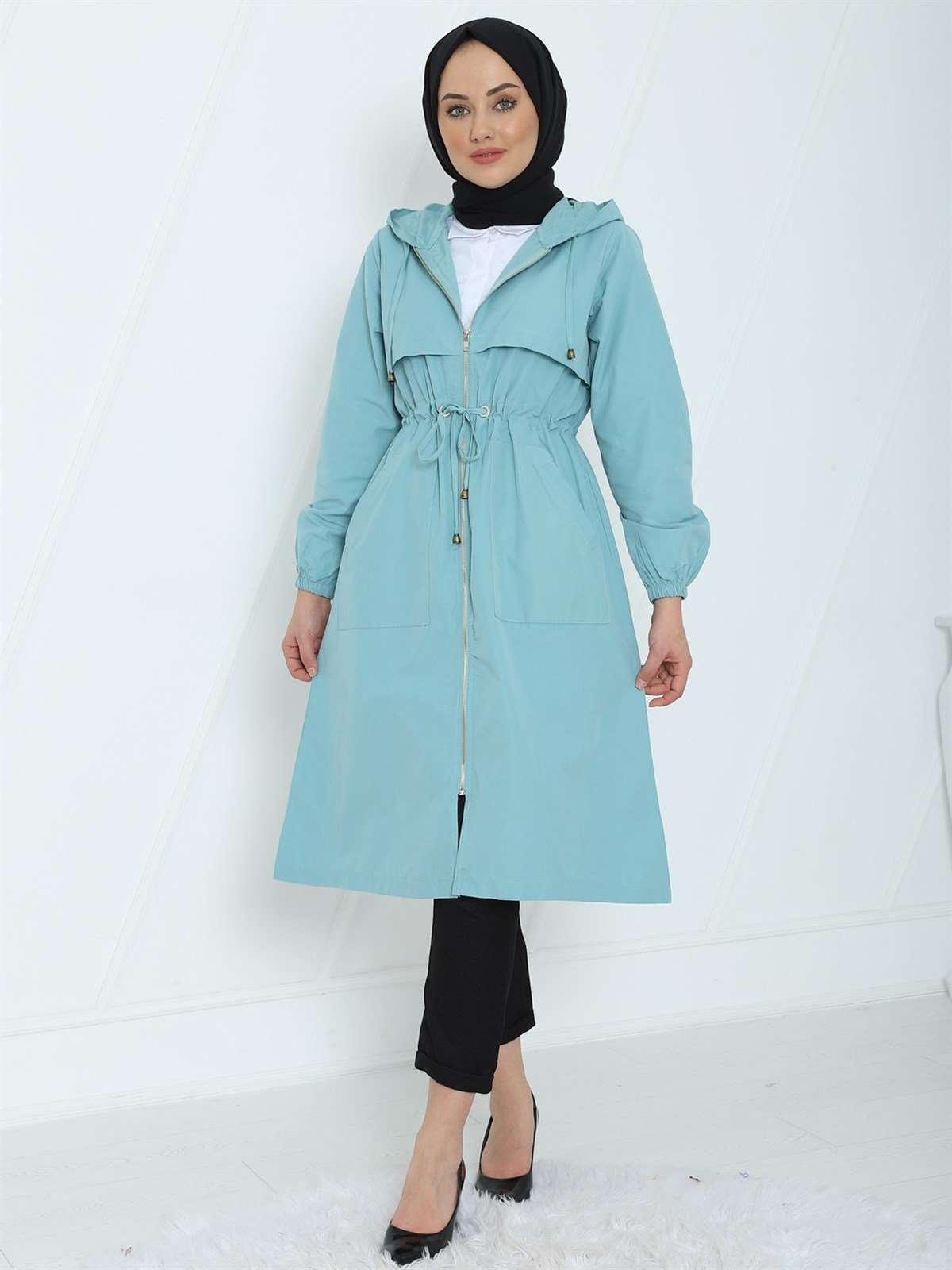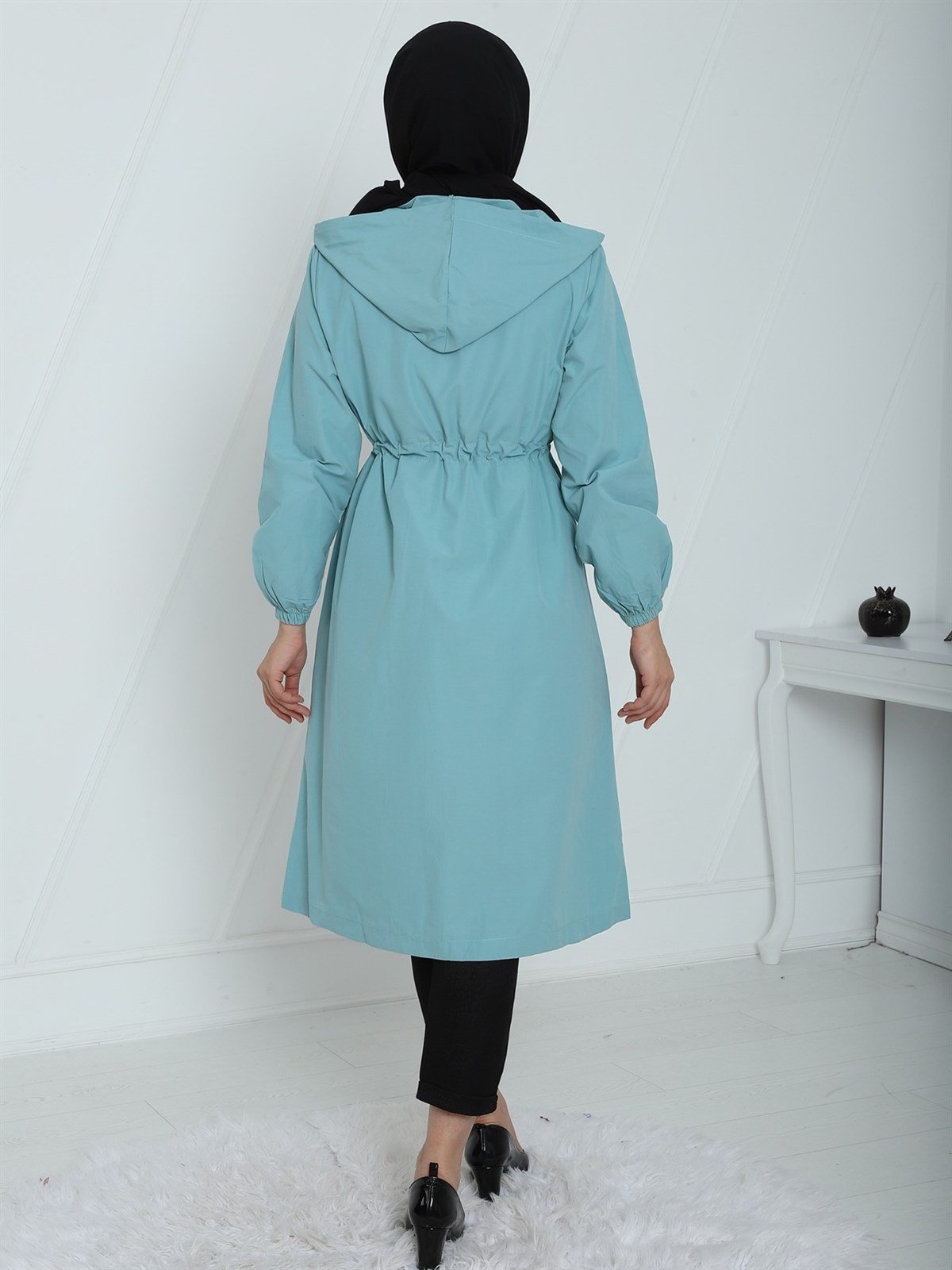 Üst Kısmı Çift Kat Kapüşonlu Kap -Mint Color (238-1752-R24)