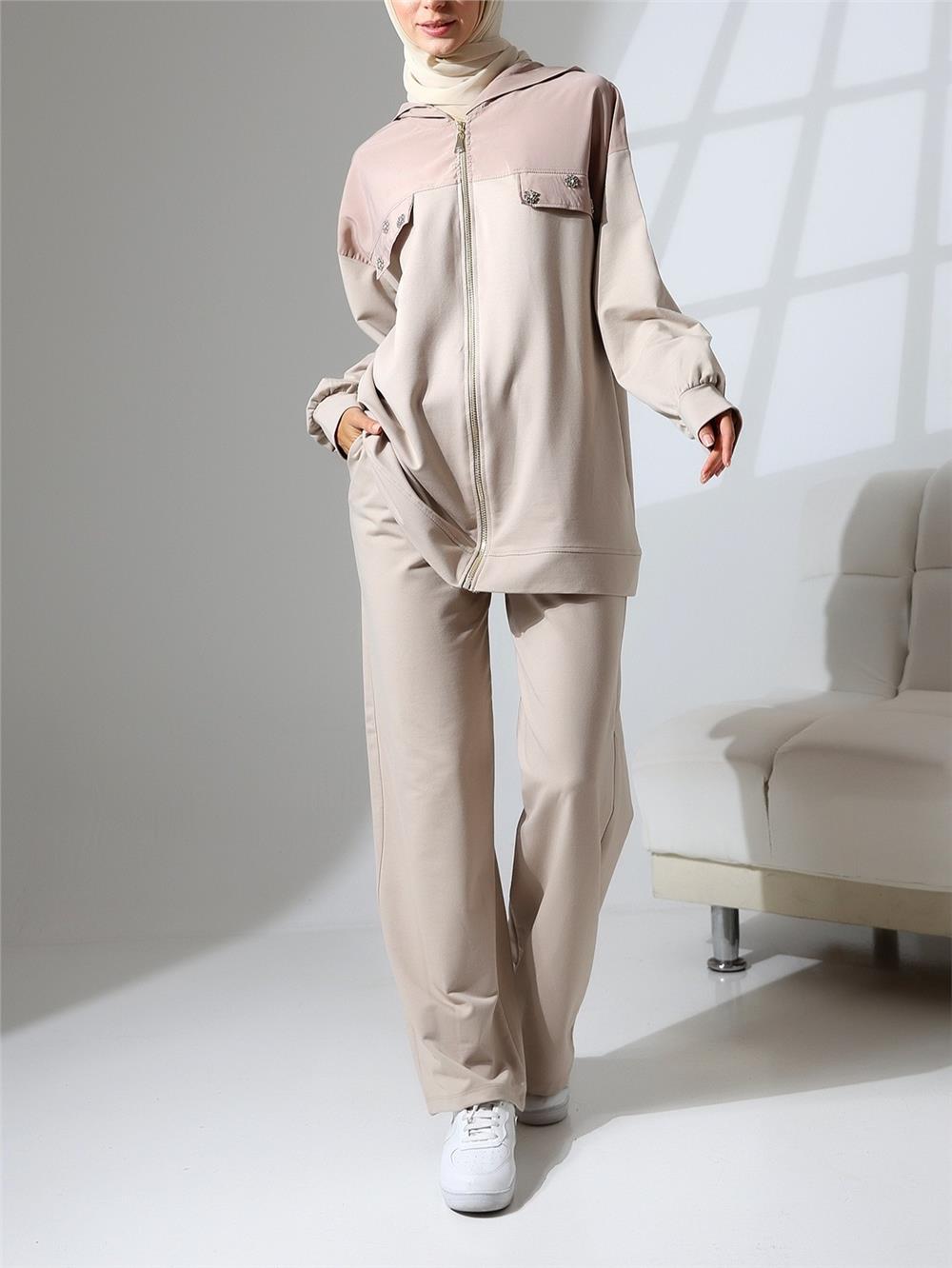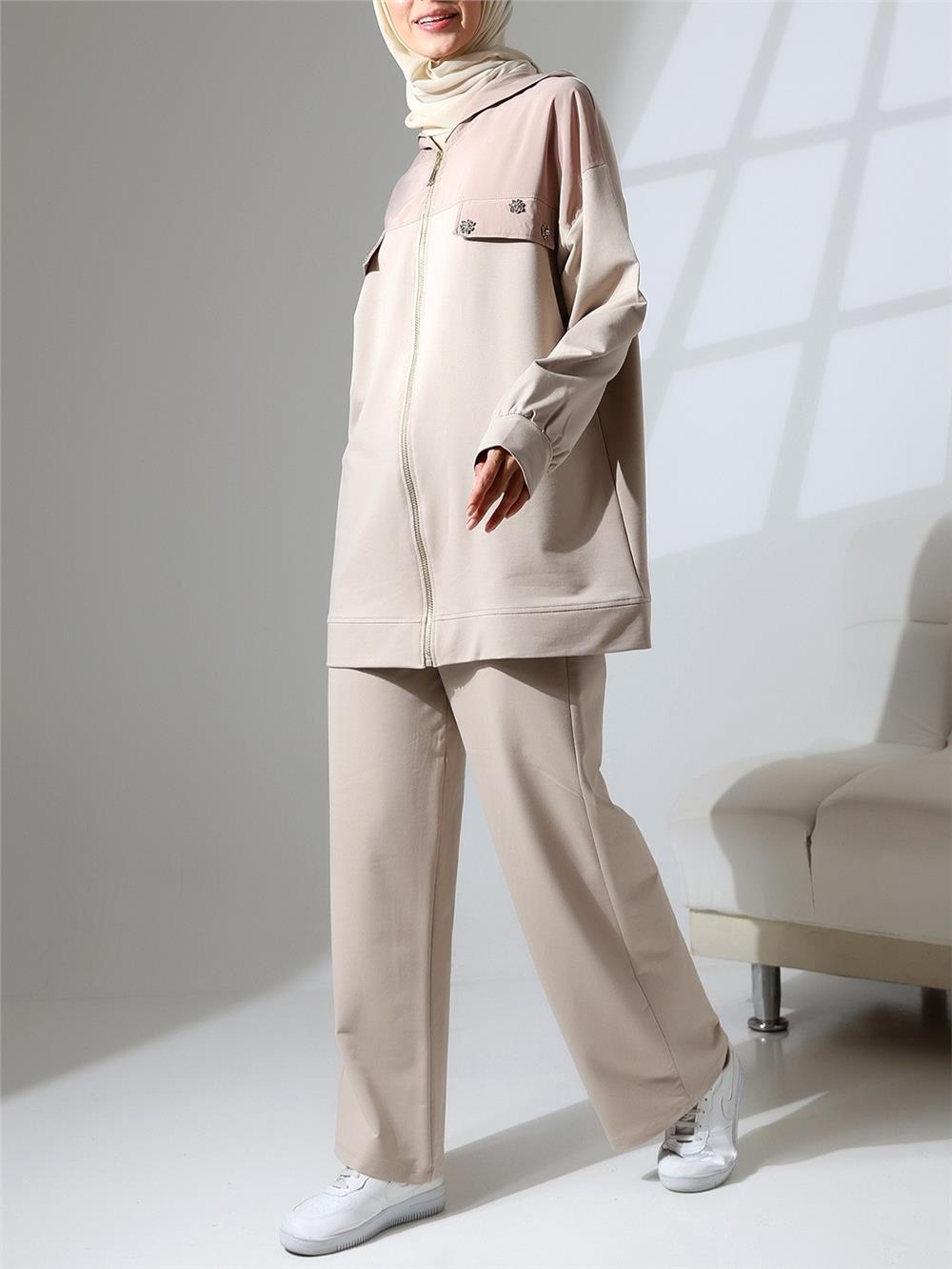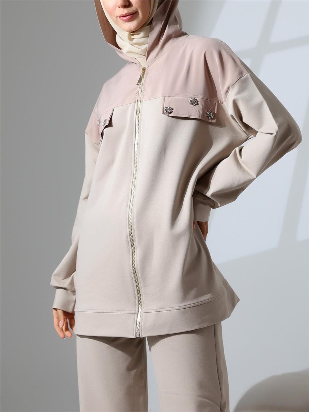 Üstü Taş Detaylı Fermuarlı İkili Takım -Taş (403-2012-R43)