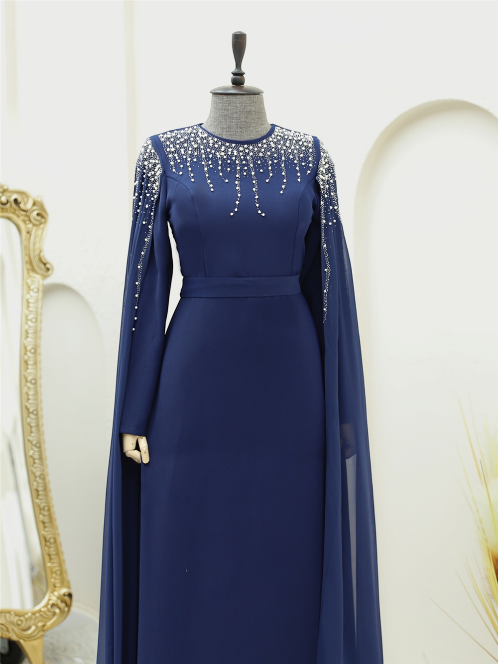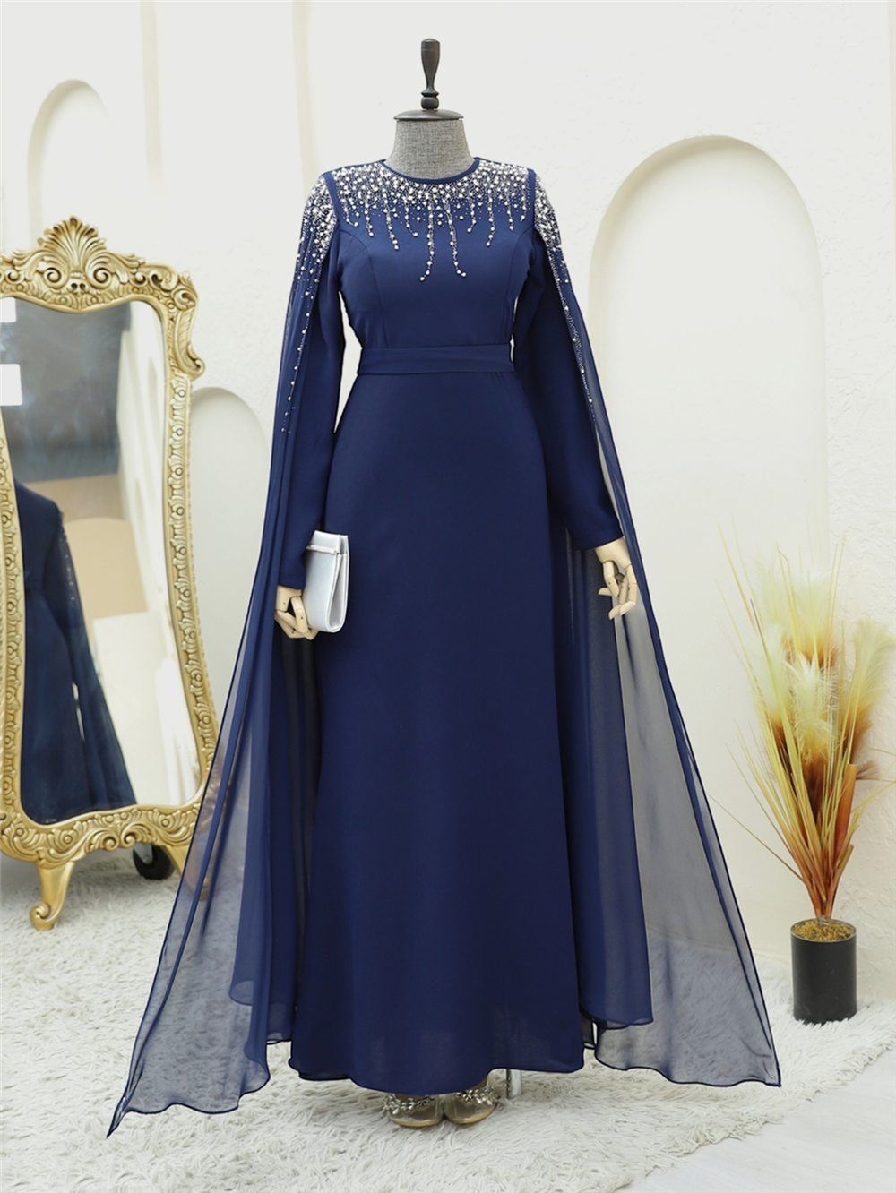 Üstü Taş Ve Boncuklu Pelerinli Abiye -Laci (316-4637-R03)