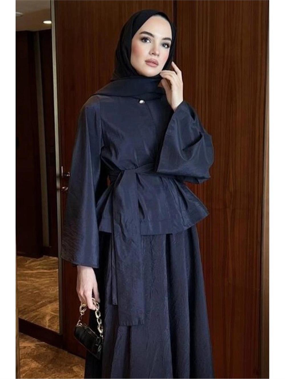 Üstü Tek Düğmeli Bağcıklı Eteği Lastikli Kraş Takım -Laci (114-3113-R03)