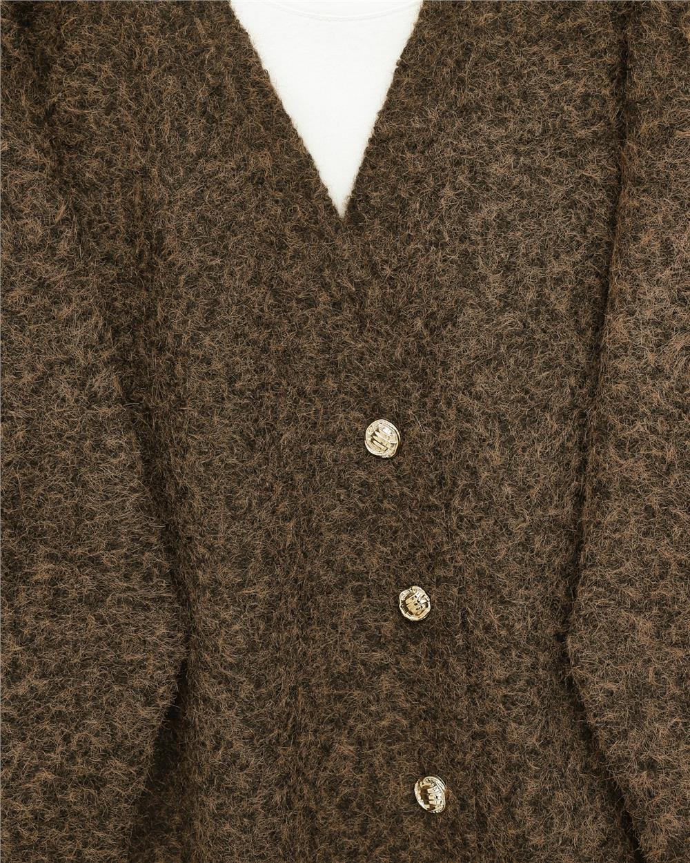 V Yaka Düğmeli Sakallı Kap -K. Kahve (398-55000-R54)