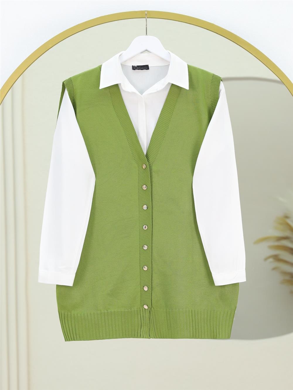 V Yaka Düğmeli Triko Yelek -F.Yeşili (109-9741-R67)