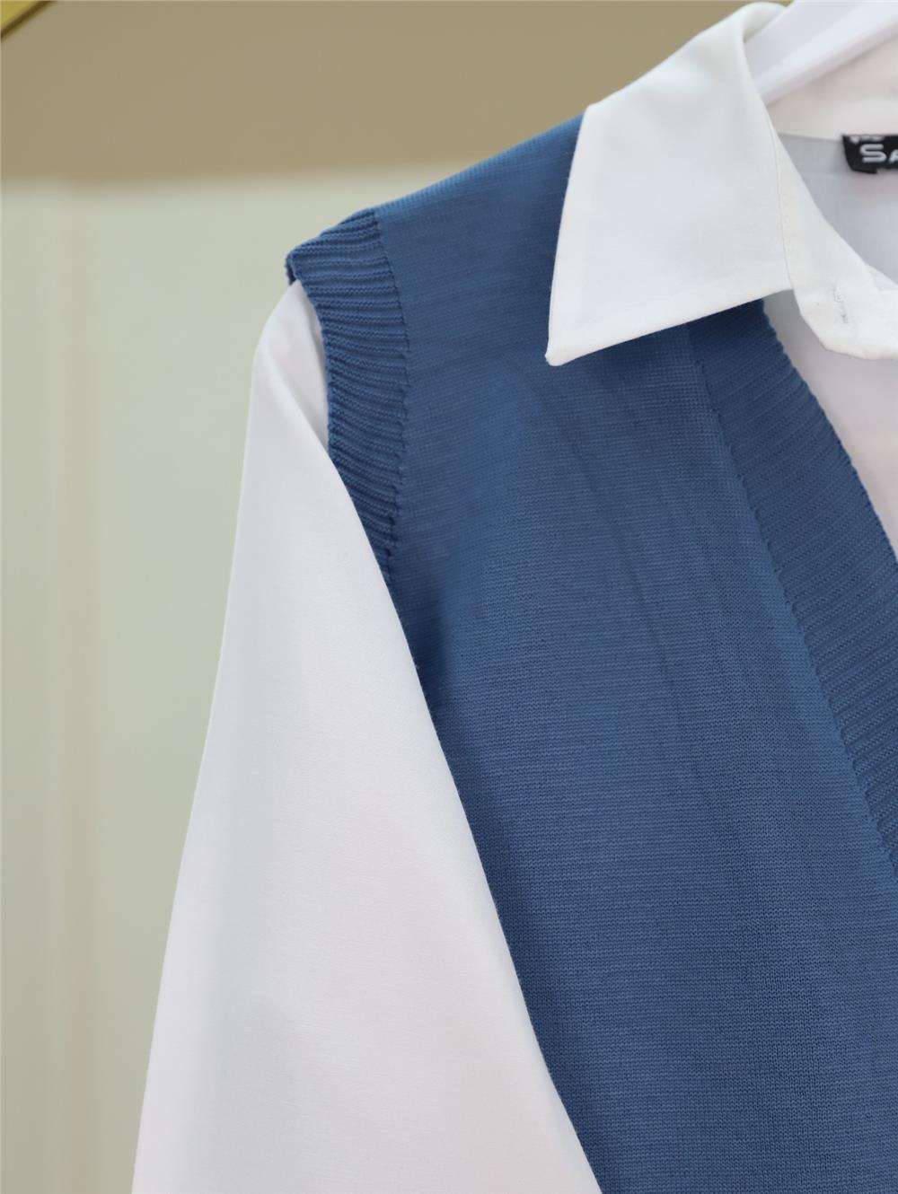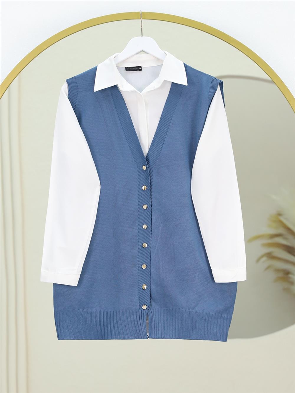 V Yaka Düğmeli Triko Yelek -İndigo (109-9741-R21)