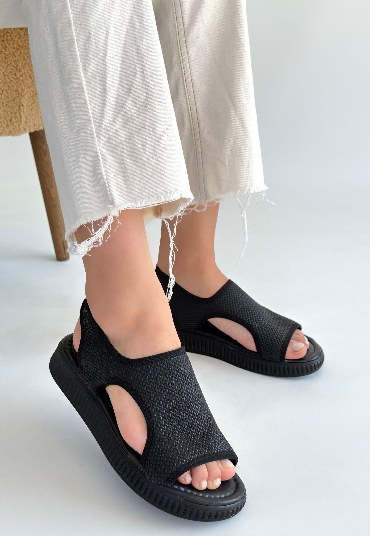 Wayi Siyah Hasır Cilt Sandalet (CEM-KDN-KST-265839)