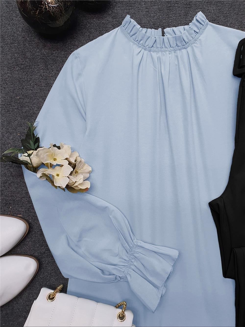 Yakası Büzgülü Bluz -Bebe Mavi (111-20840-R32)