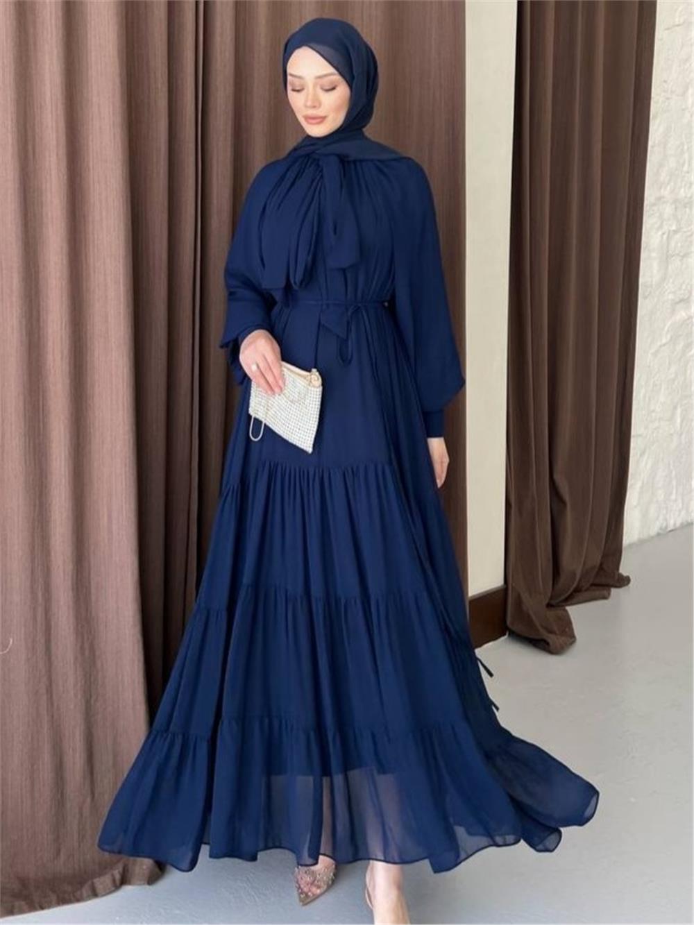 Yakası Fular Detaylı Eteği Parçalı Şifon Elbise -Laci (114-5731-R03)