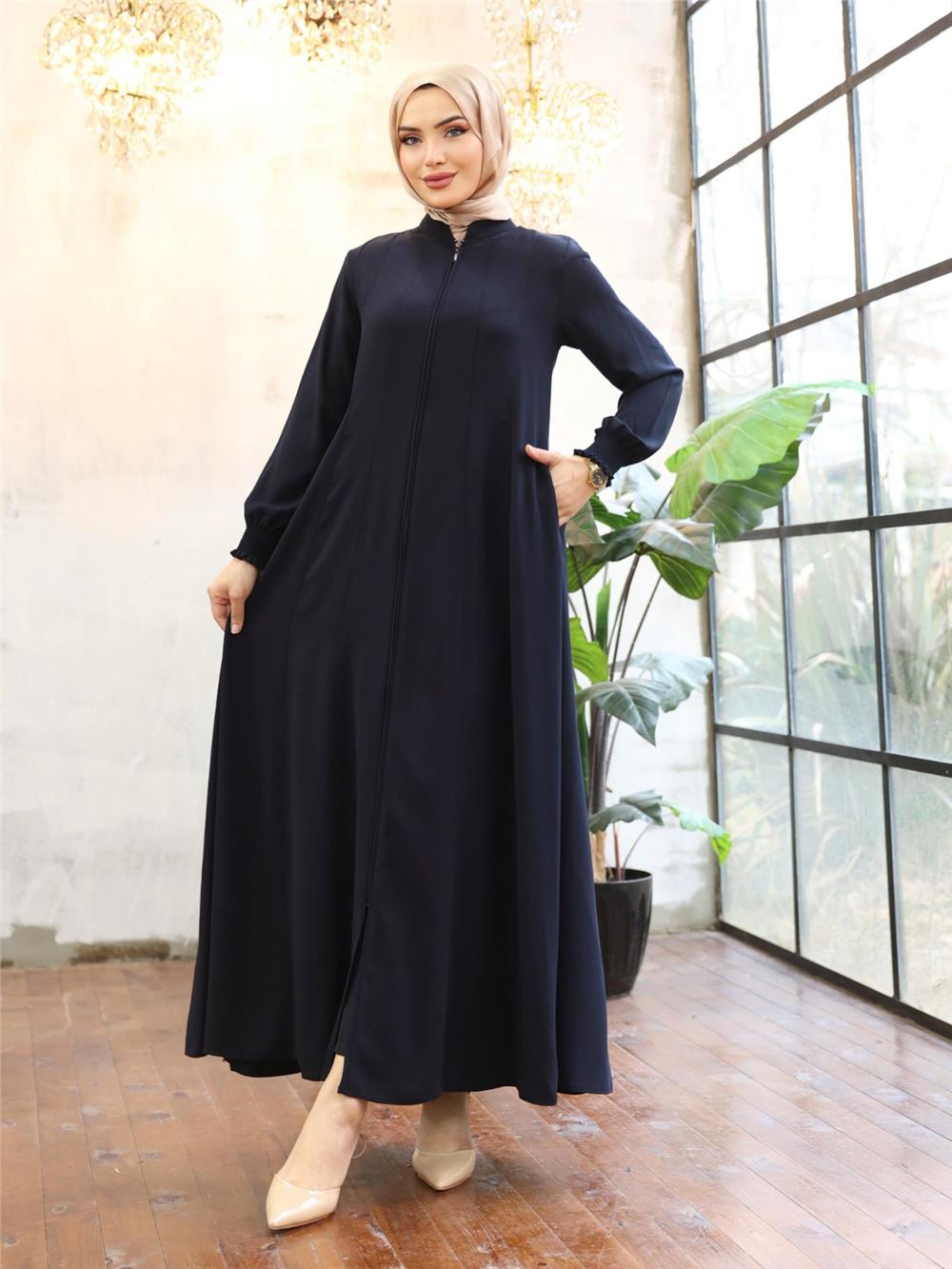 Yan Cepli Boydan Fermuarlı Kolu Lastikli Ferace -Laci (412-3002-R03)