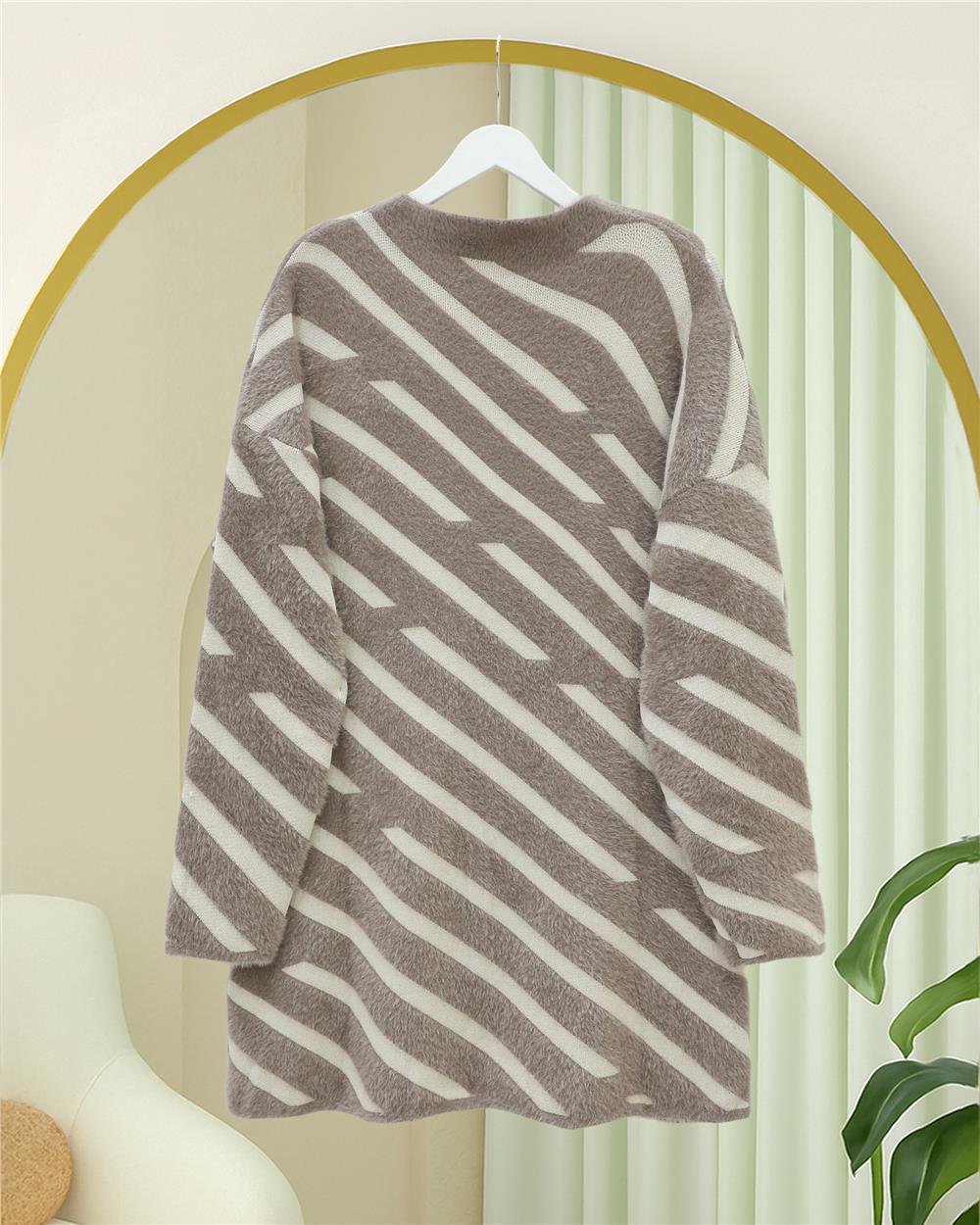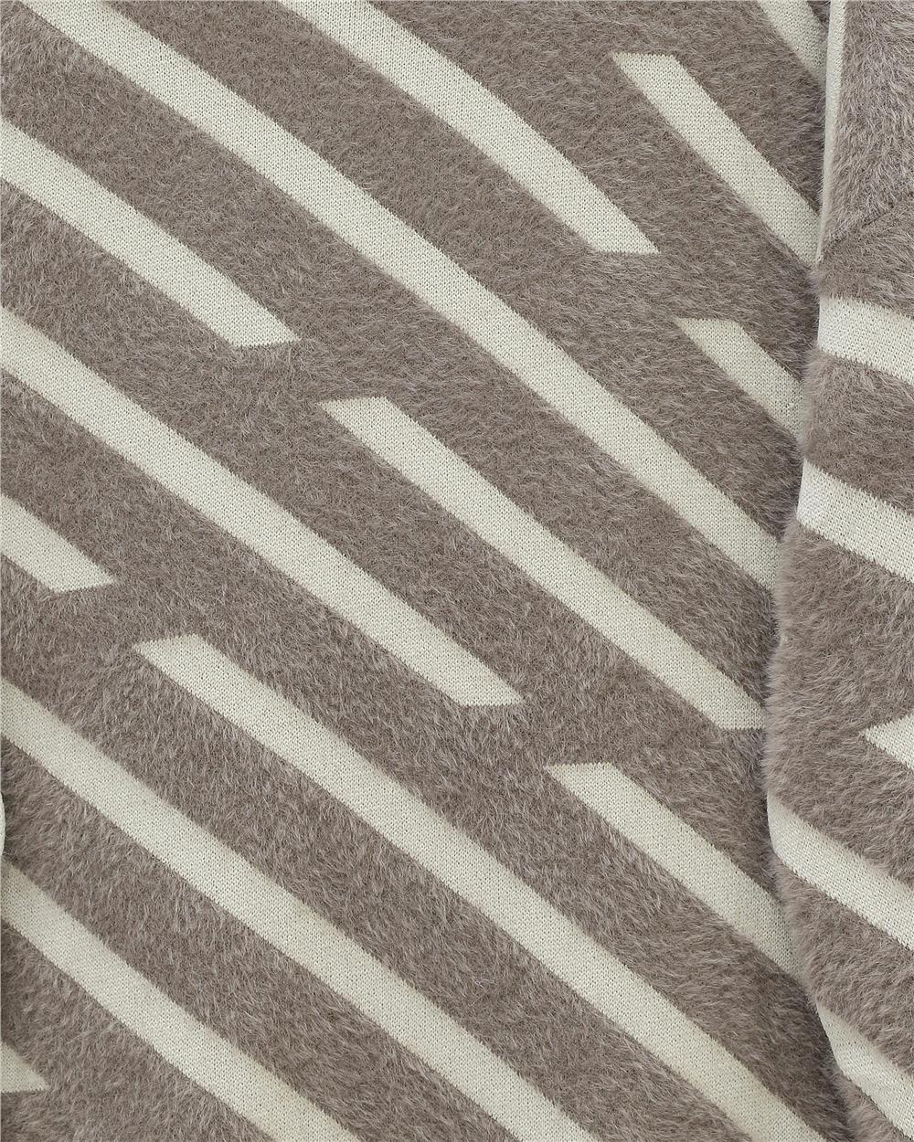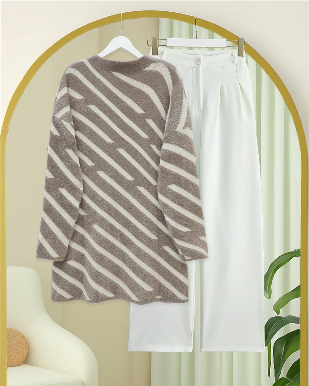 Yan Çizgili Sakallı Salaş Triko Kazak -Toprak (295-4530-R55)