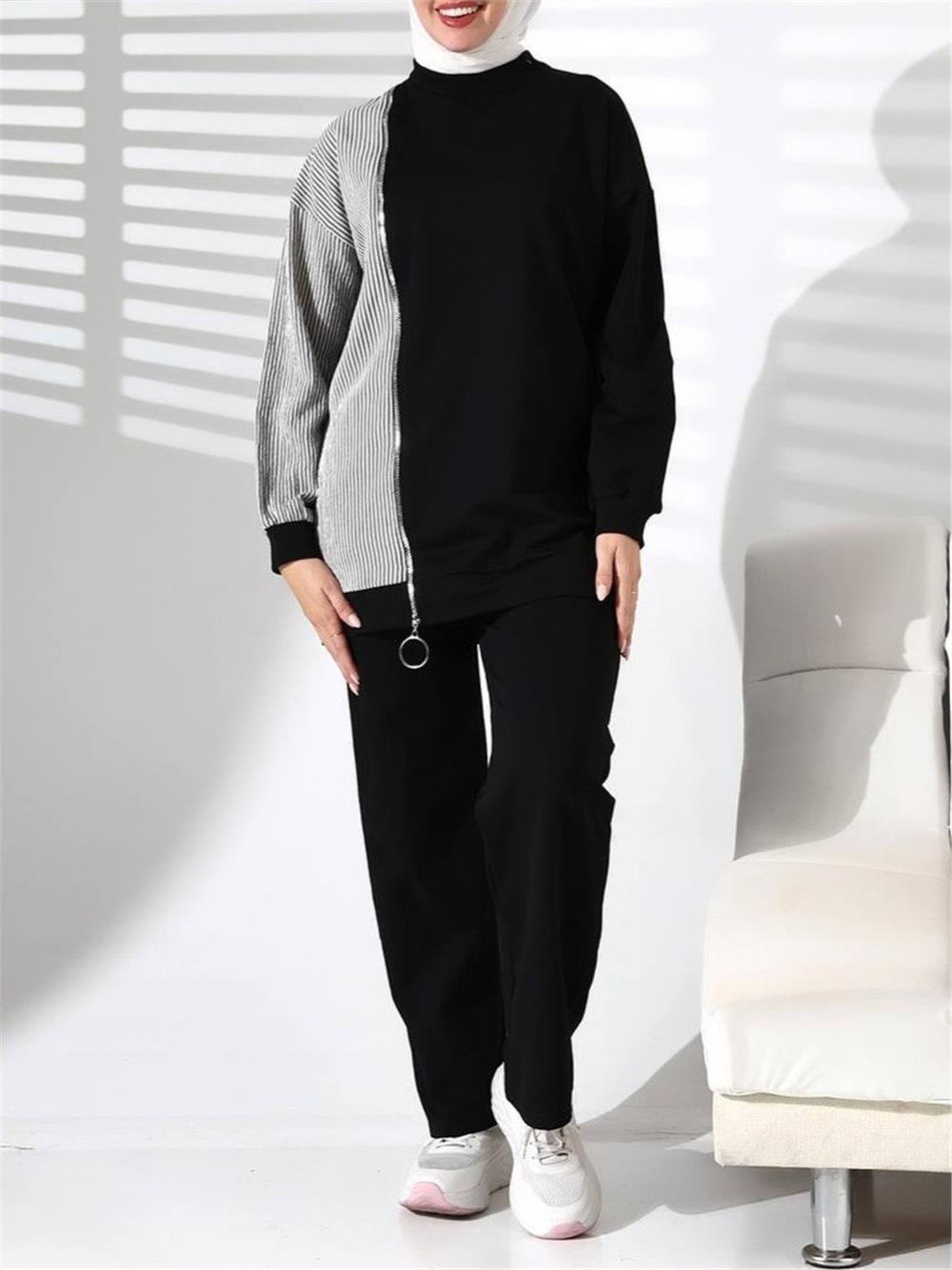 Yandan Fermuarlı Yuvarlak Yaka Takım -Siyah (403-2019-R01)