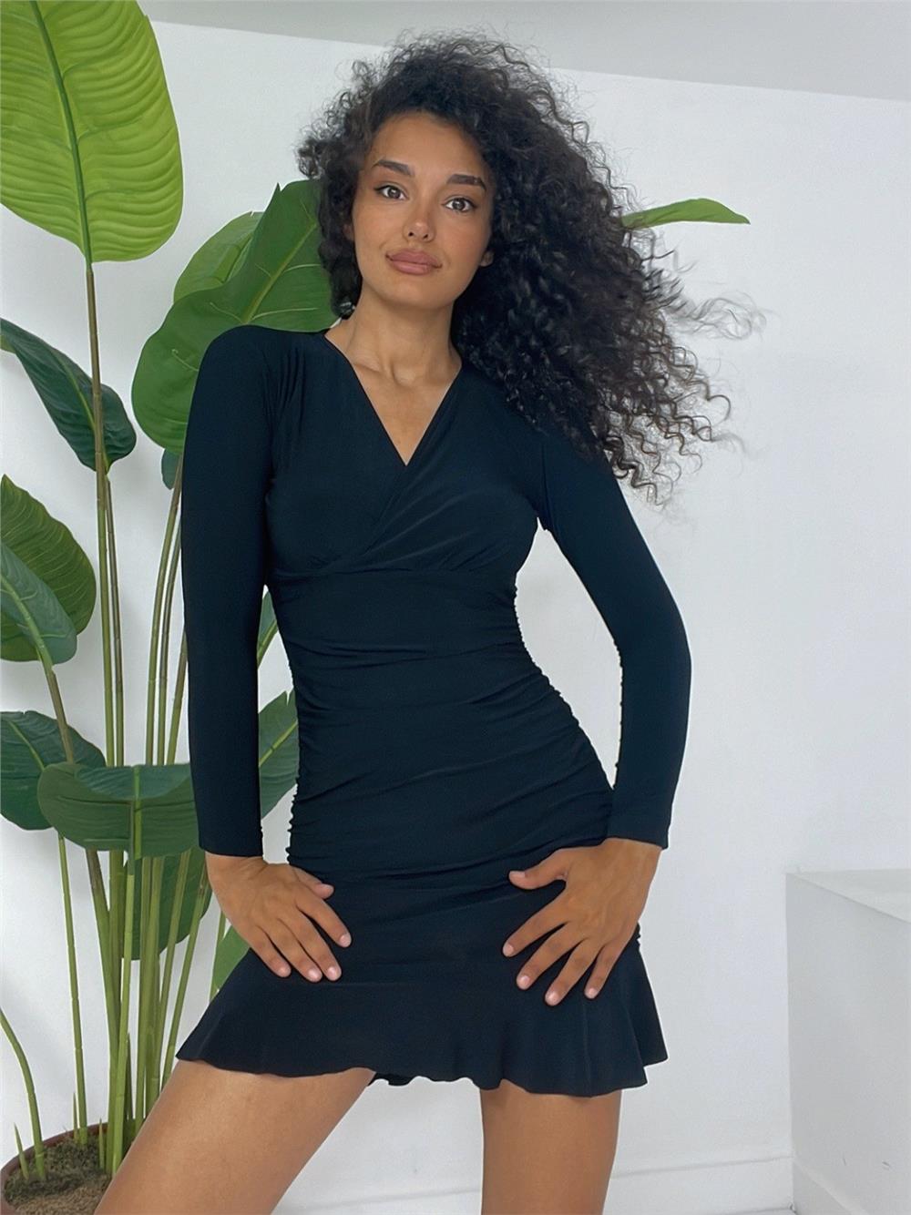 Sandy Mini Dress with Elastic Sides and Flounce Skirt -Black (246-3625-R01)