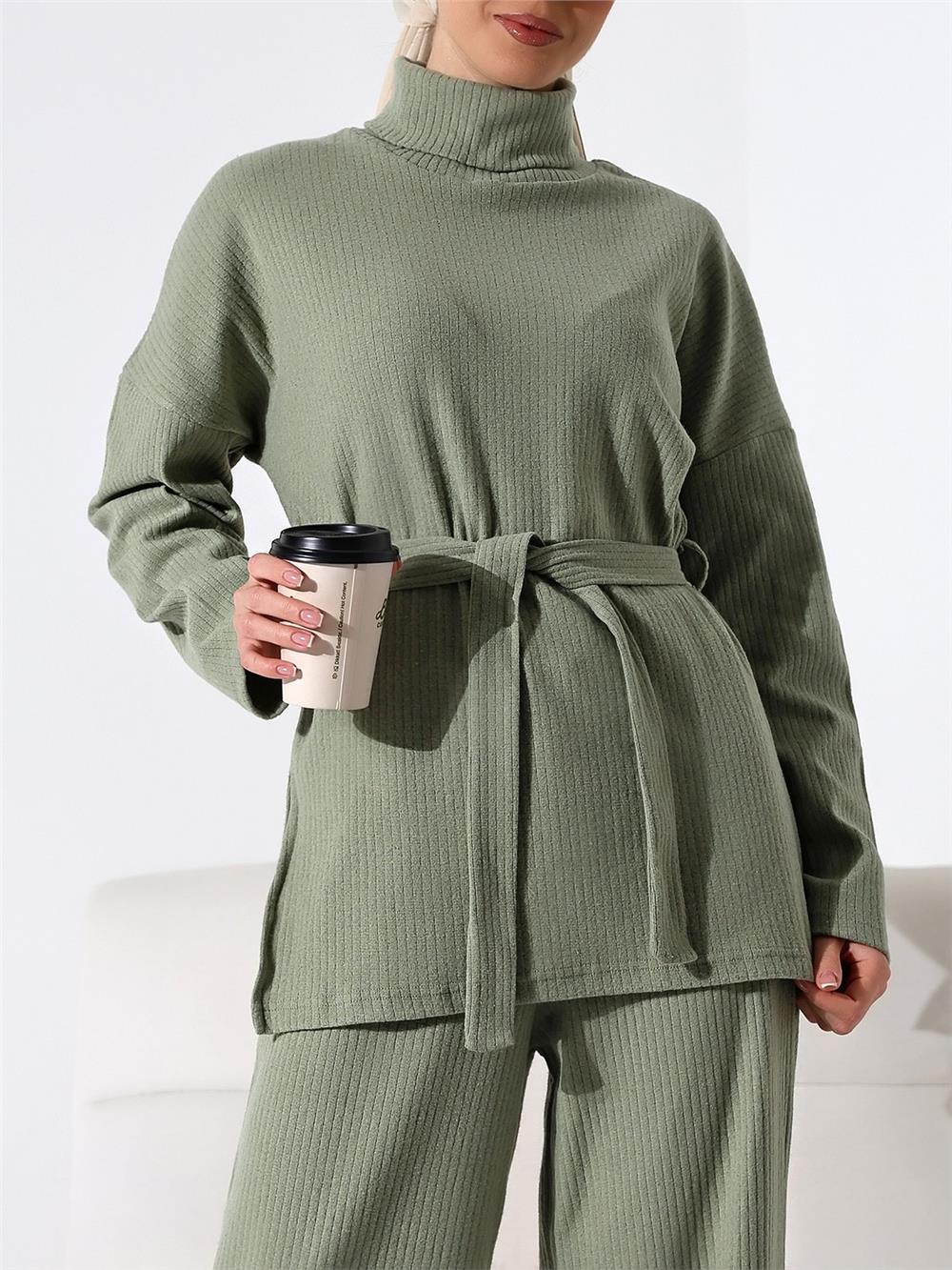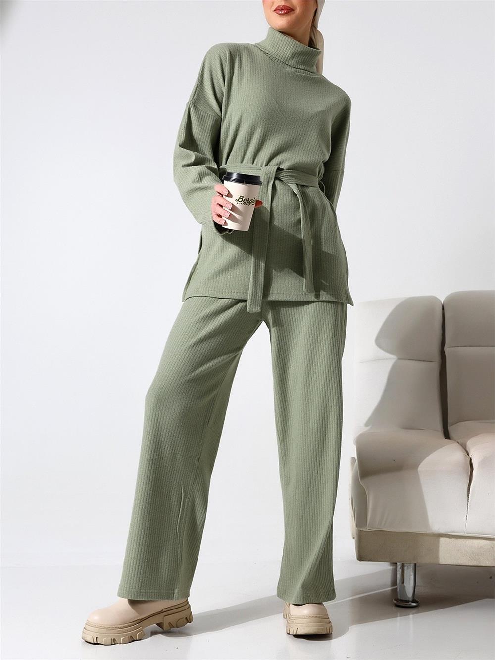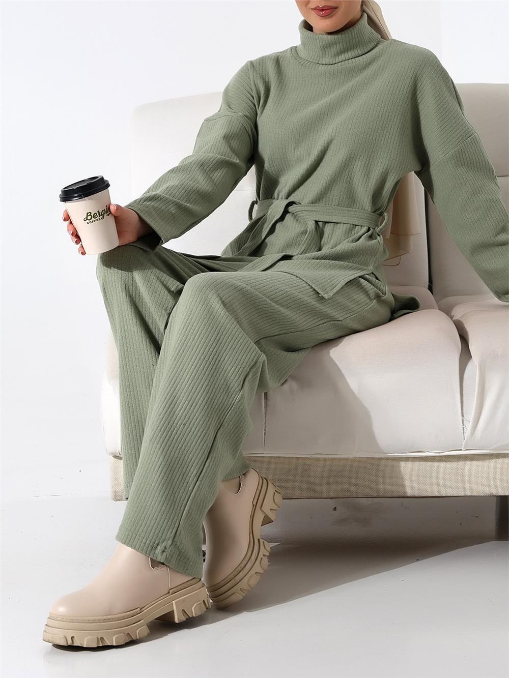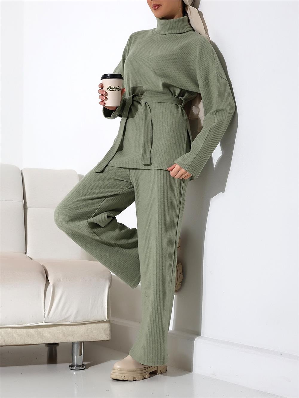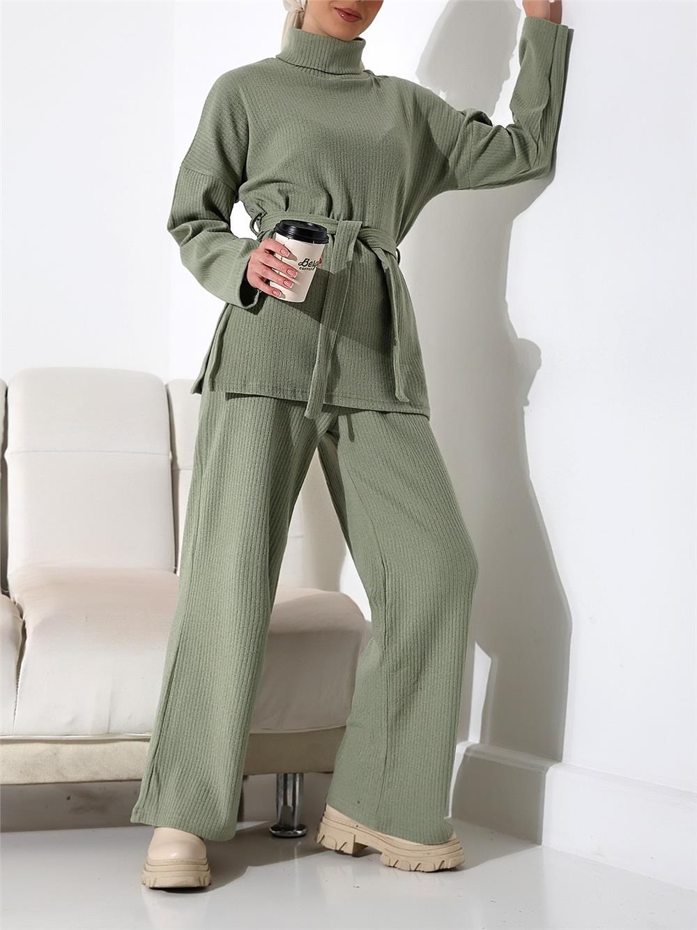 Yarım Boğazlı Kuşaklı Fitilli Takım -Su Yeşili (253-12963-R36)