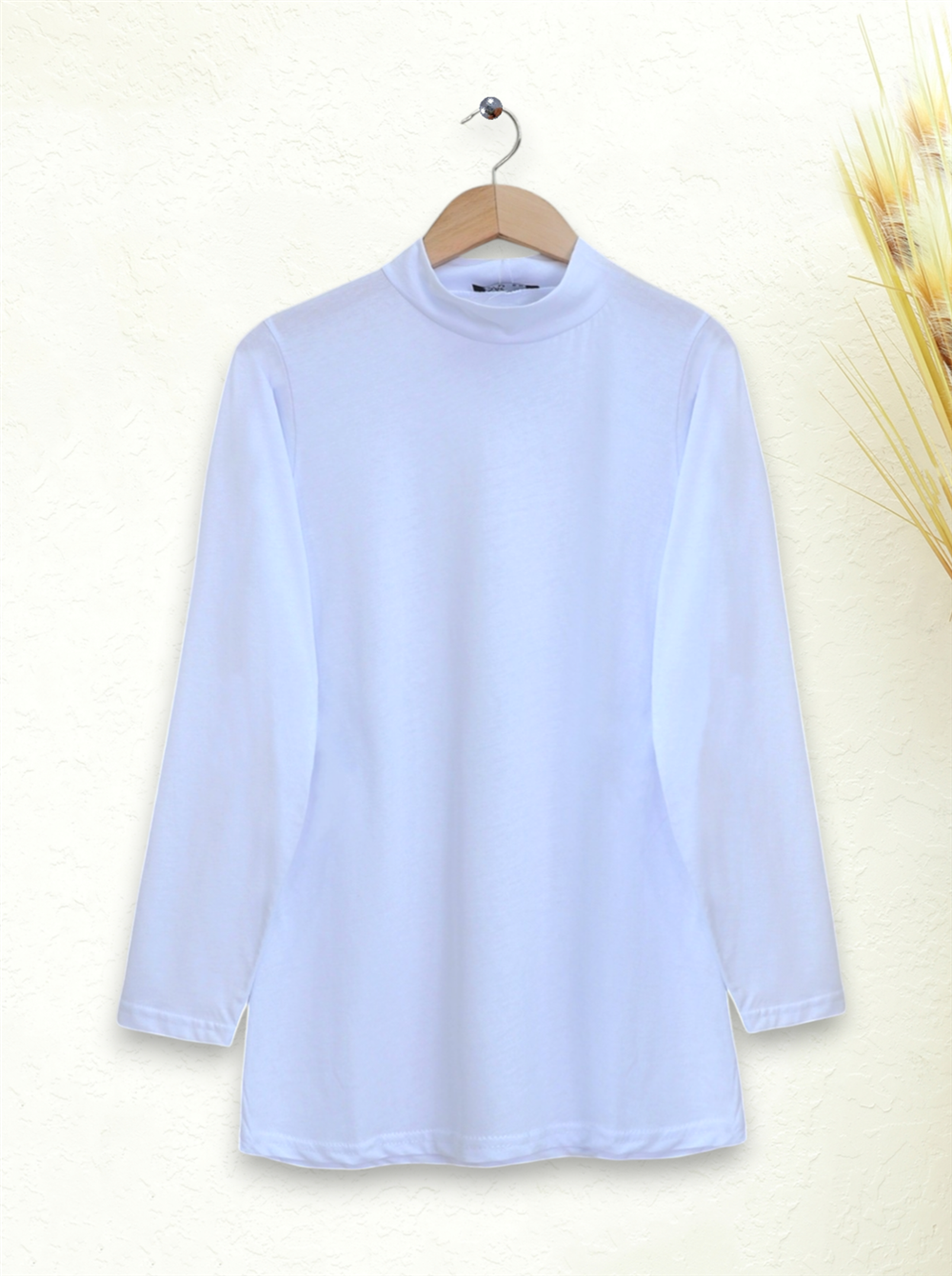 Yarım Boğazlı Uzun Kollu Bluz -Beyaz (253-12428-R02)
