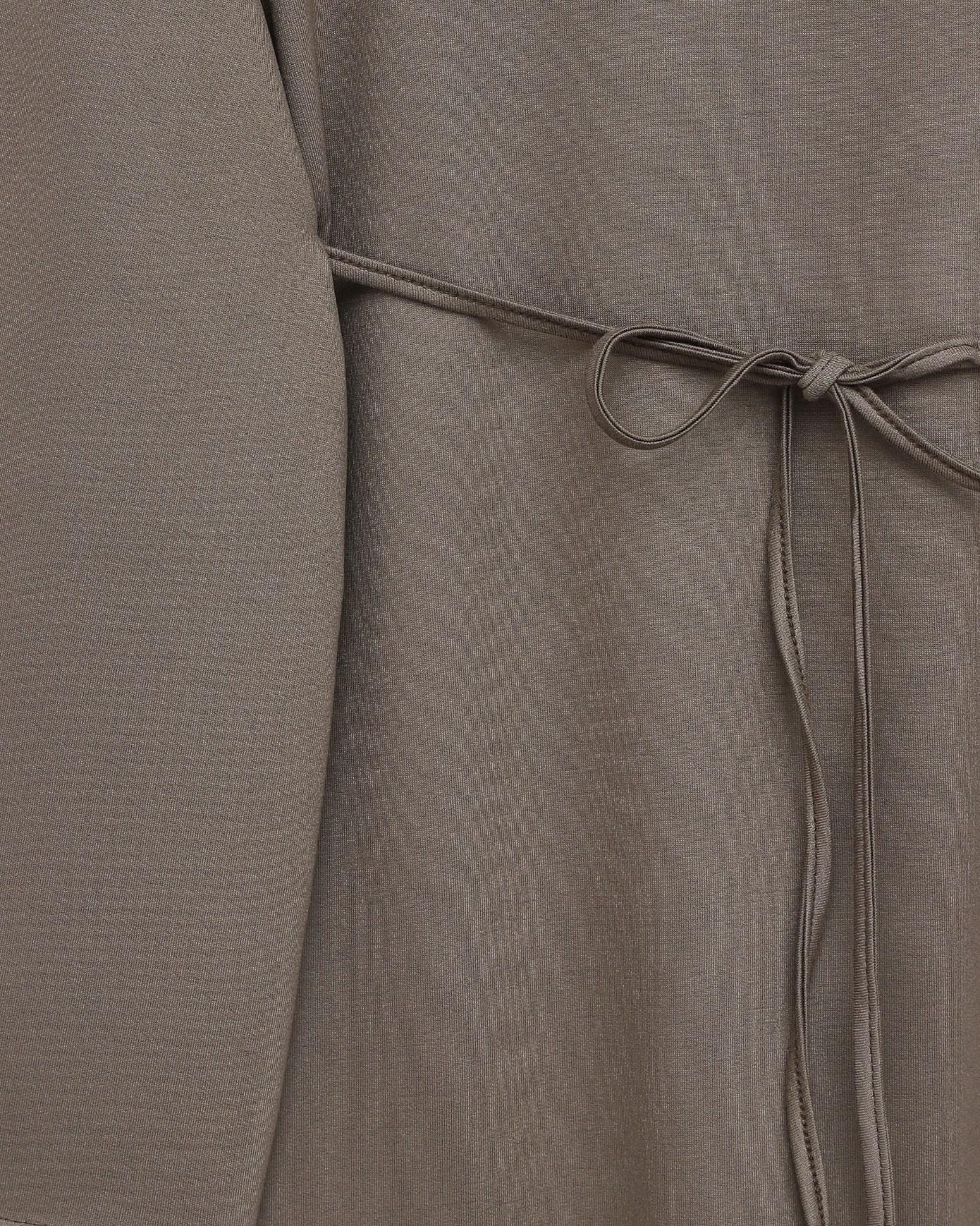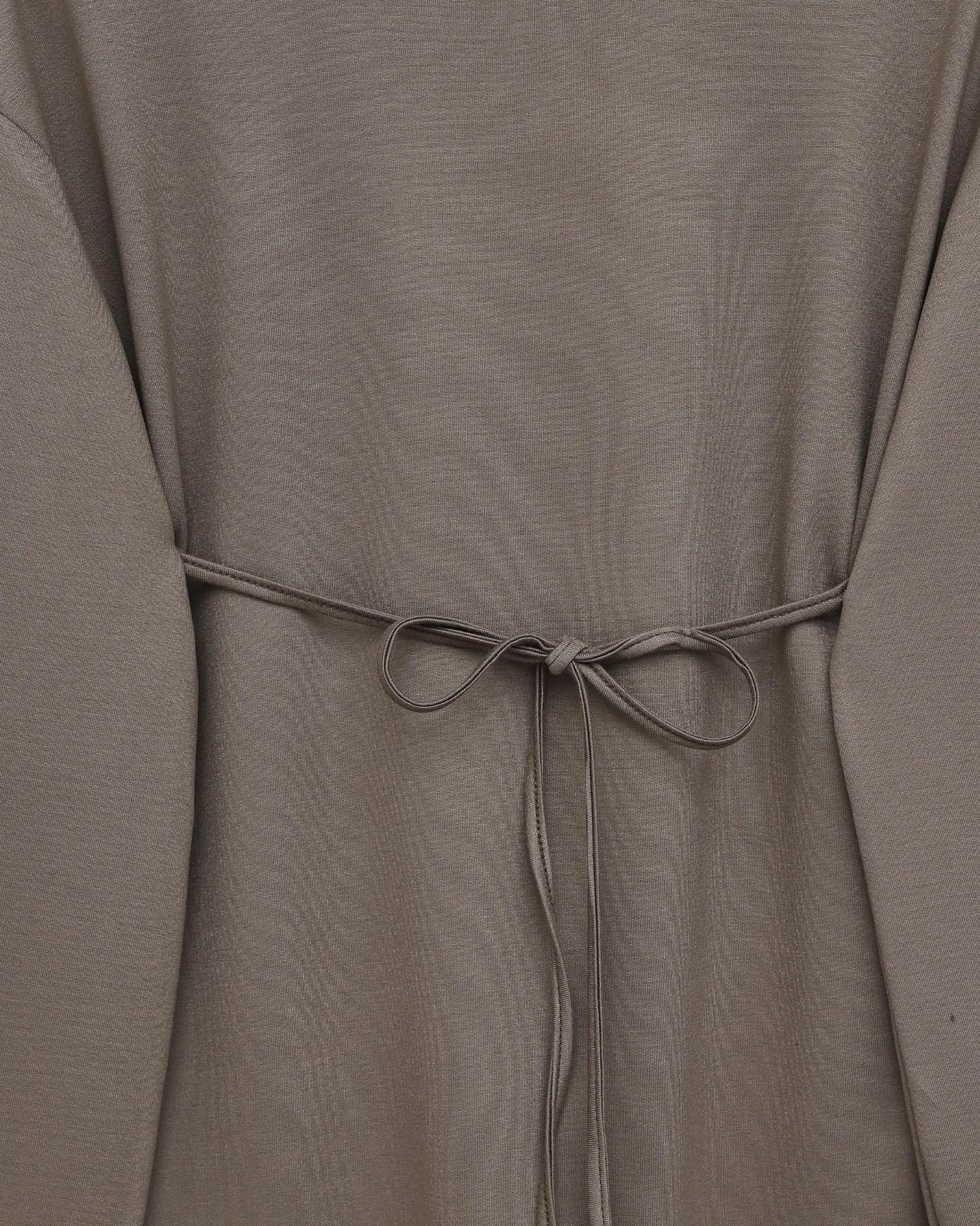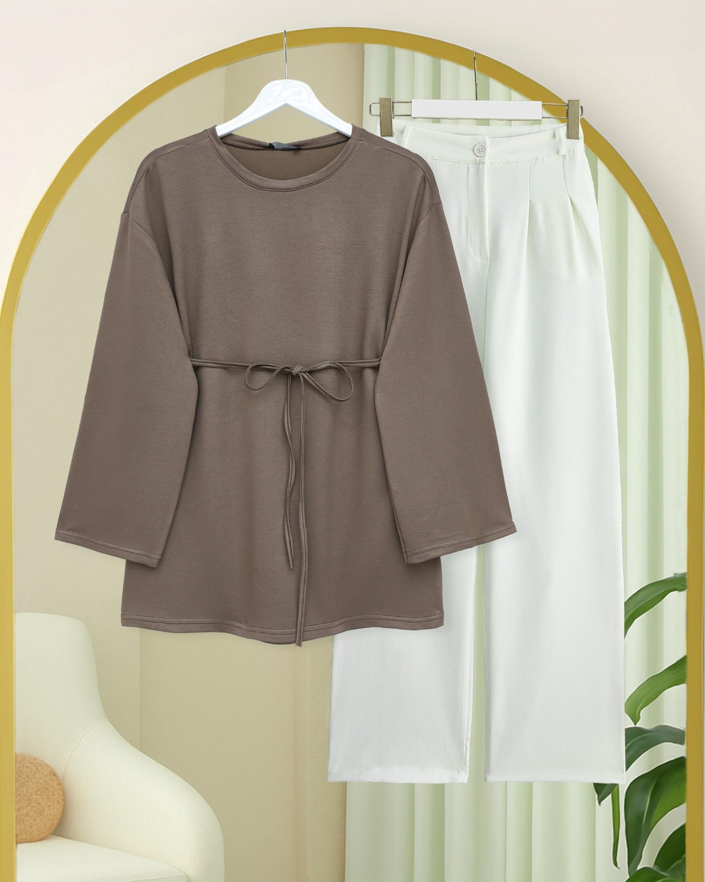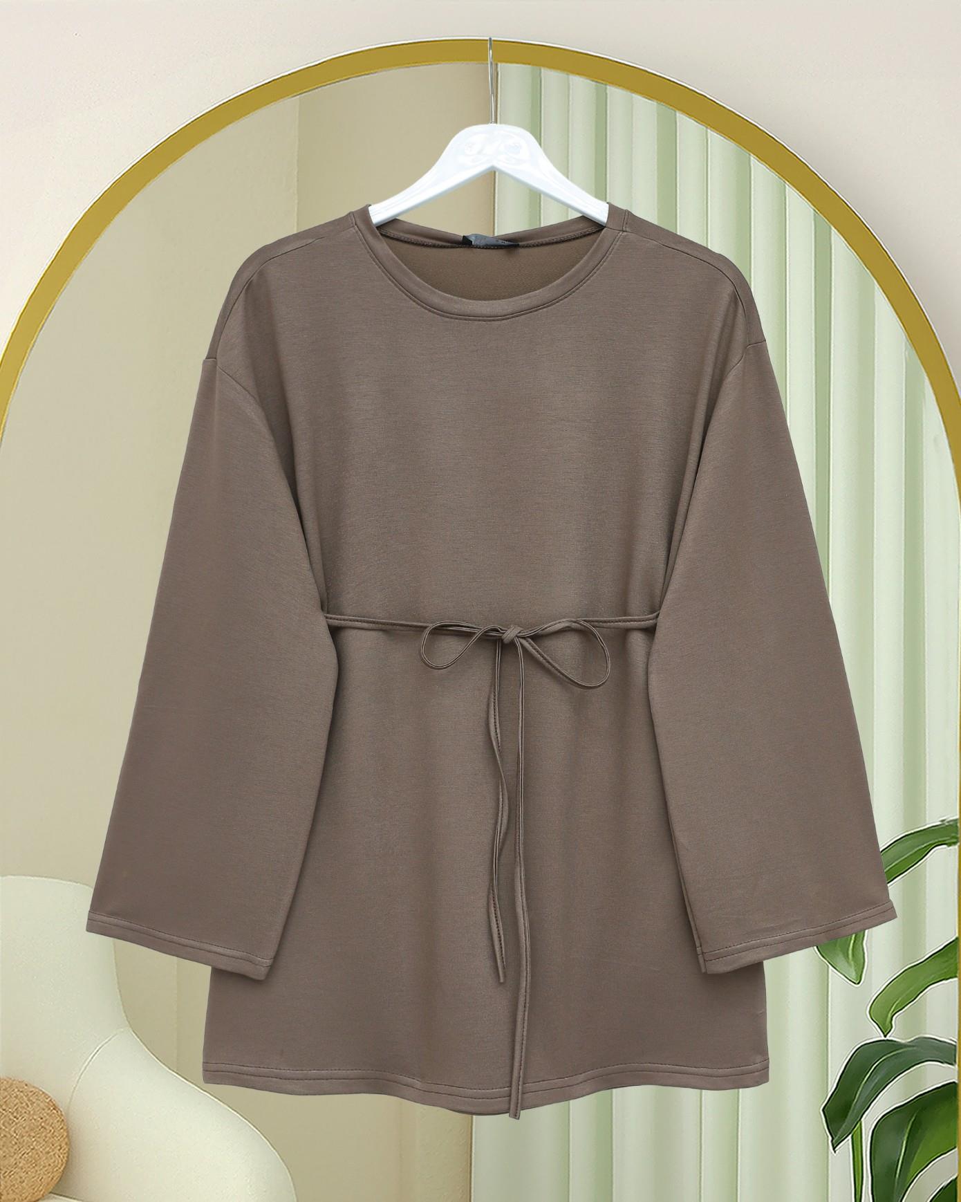 Yuvarlak Yaka Beli Bağlamalı Penye Tunik -Açık Kahve (253-13071-R76)