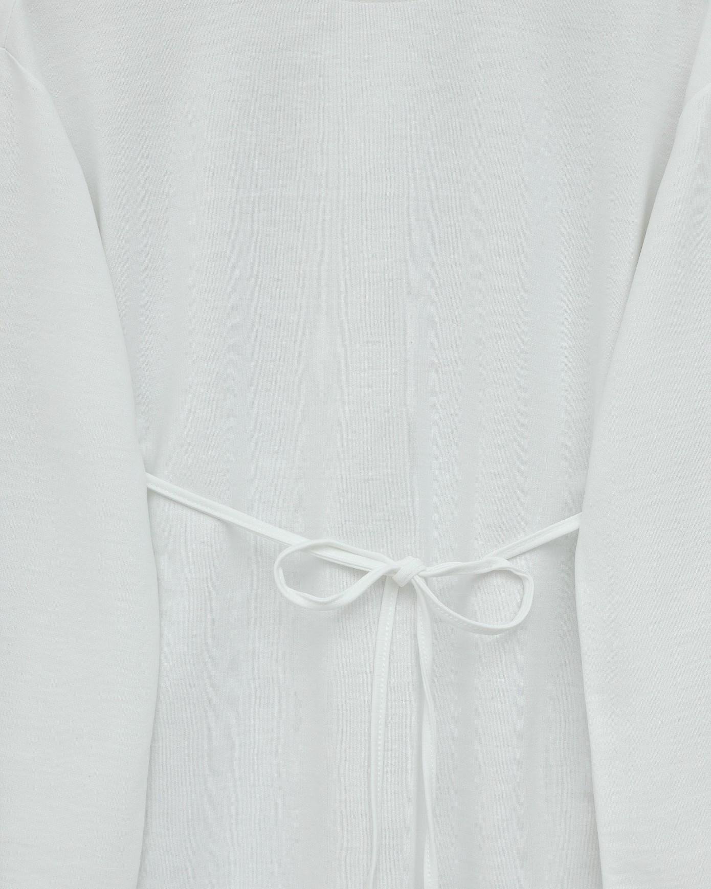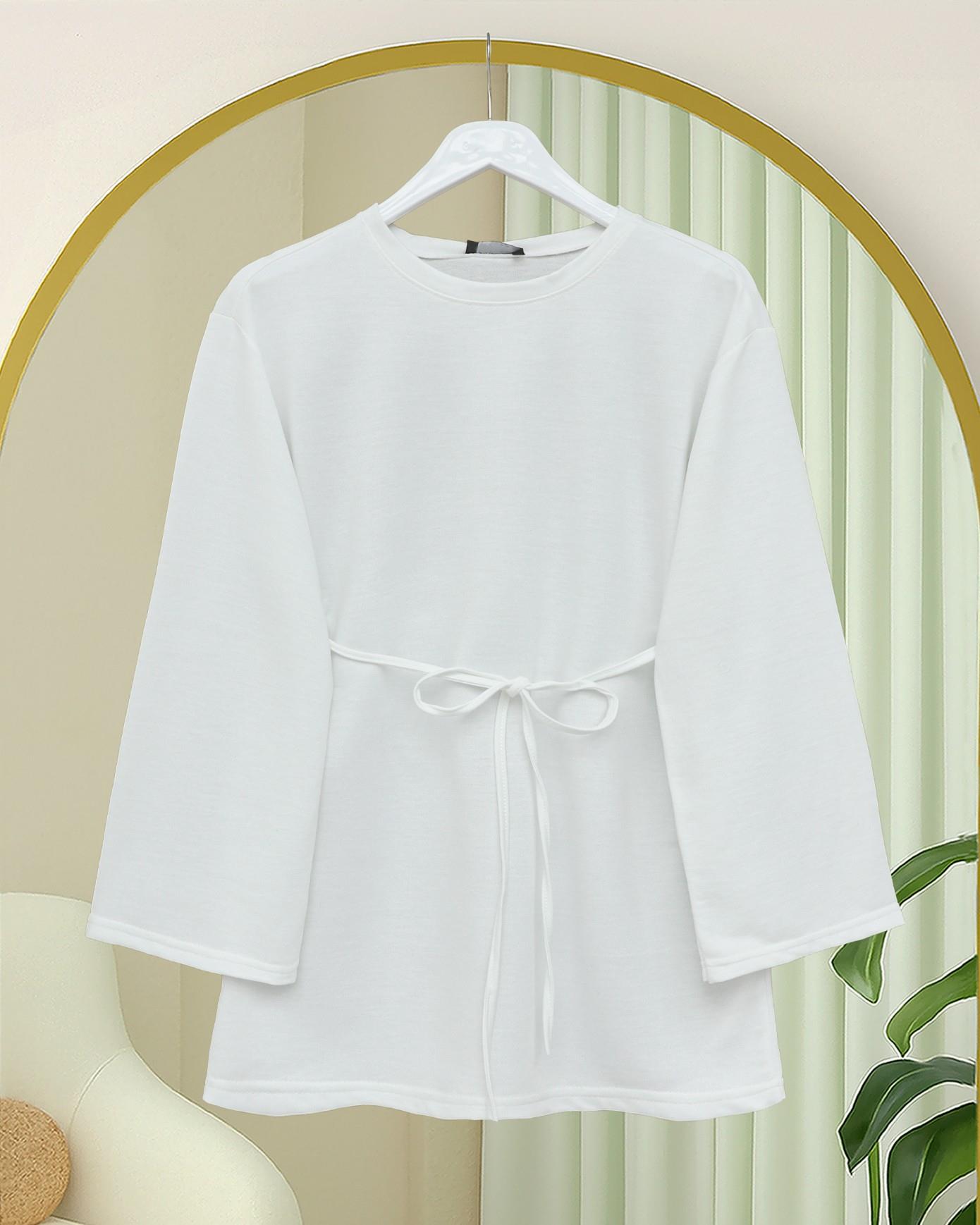 Yuvarlak Yaka Beli Bağlamalı Penye Tunik -Beyaz (253-13071-R02)