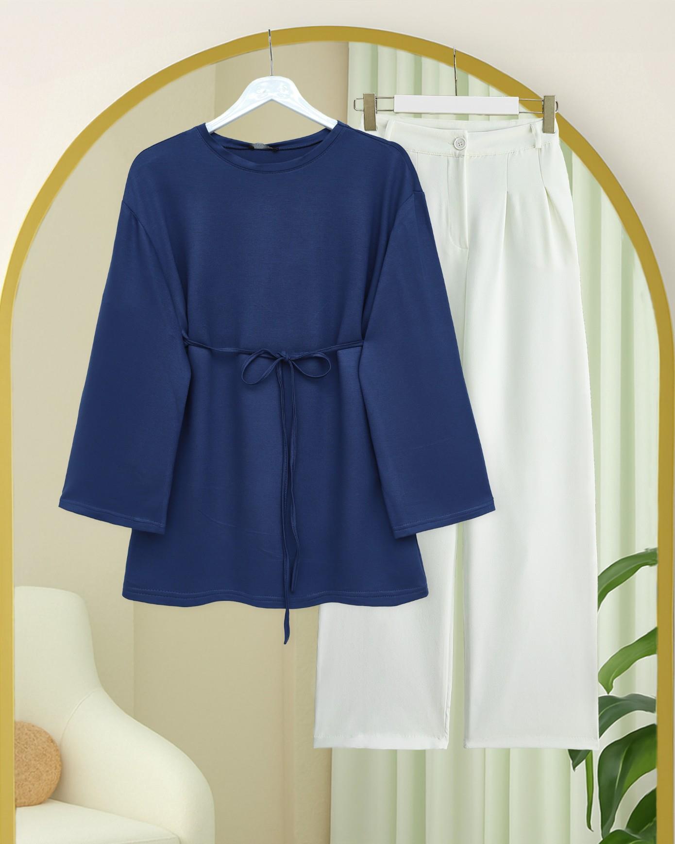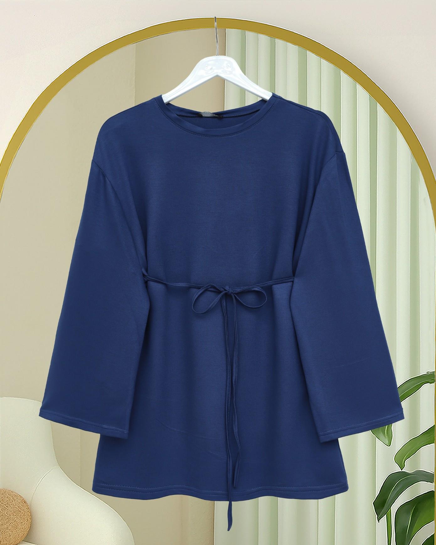 Yuvarlak Yaka Beli Bağlamalı Penye Tunik -Laci (253-13071-R03)