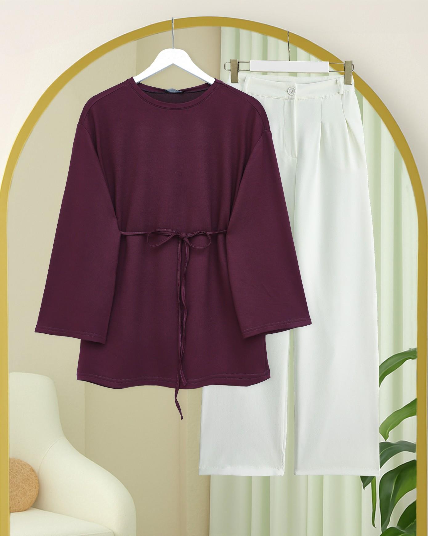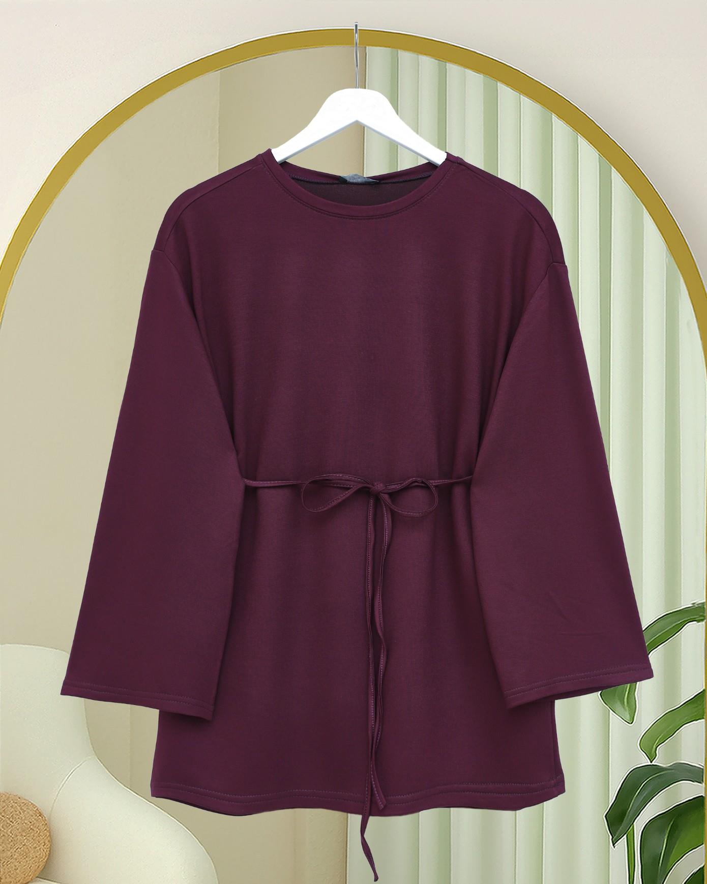 Yuvarlak Yaka Beli Bağlamalı Penye Tunik -Mürdüm (253-13071-R09)