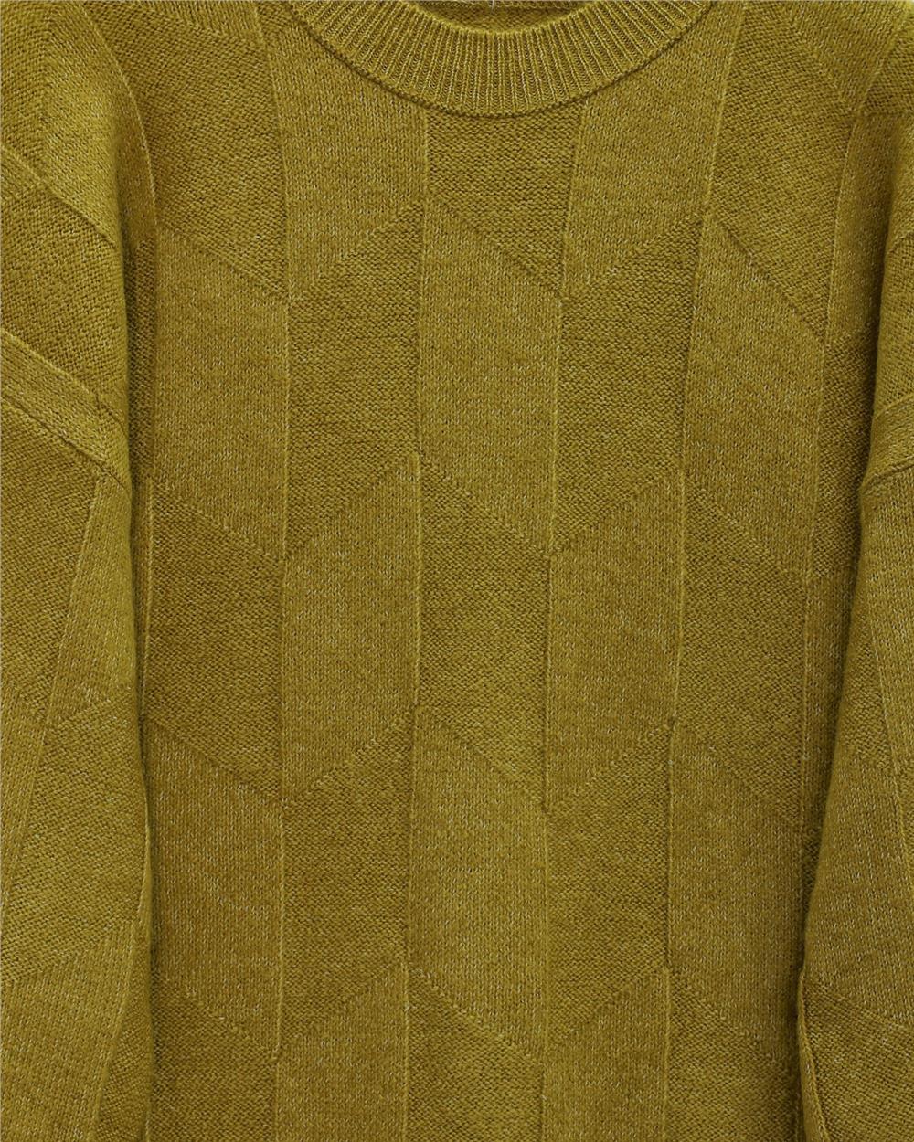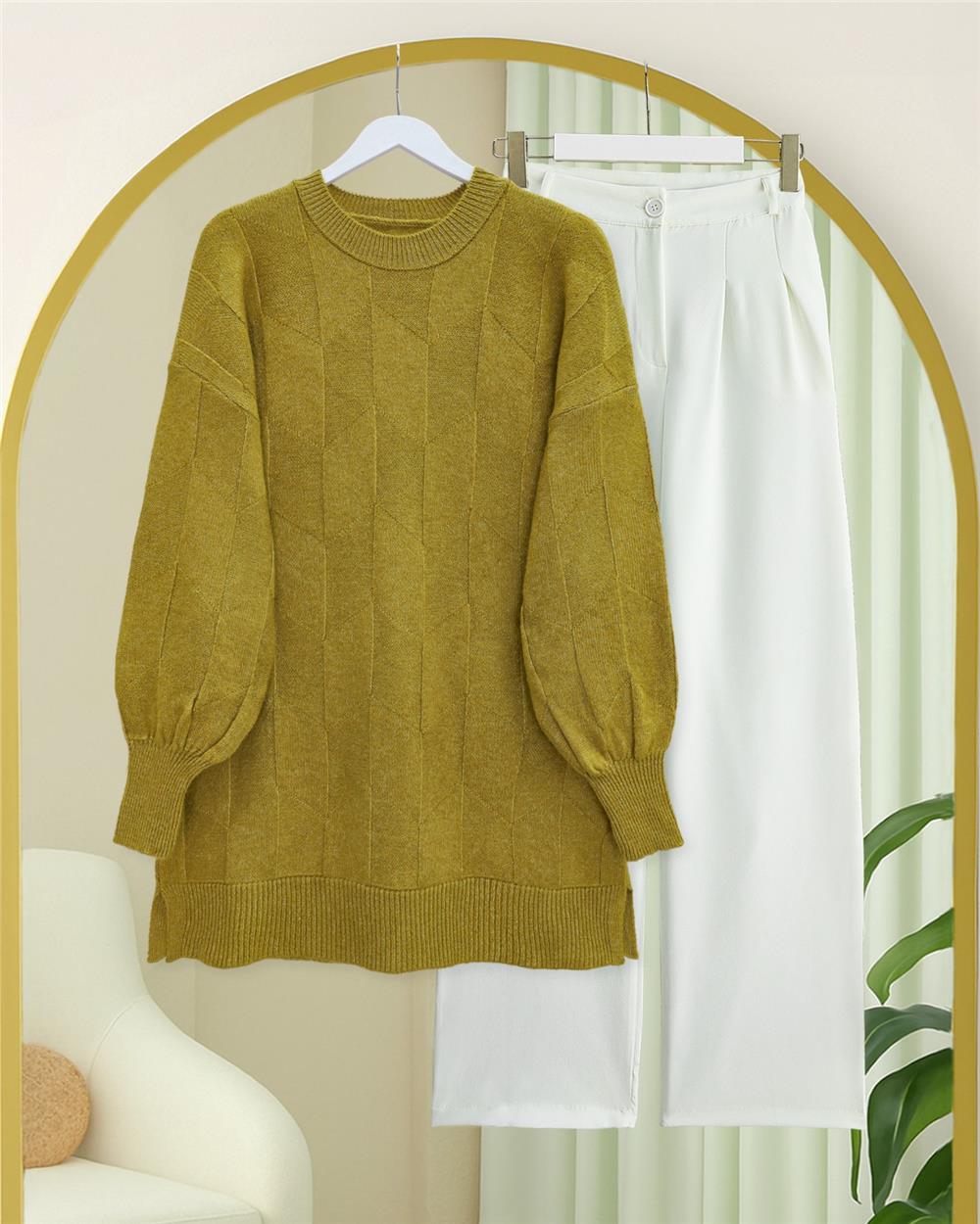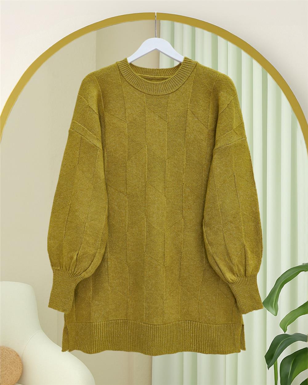 Yuvarlak Yaka Salaş Desenli Triko Kazak -Yağ Yeşili (295-4514-R72)