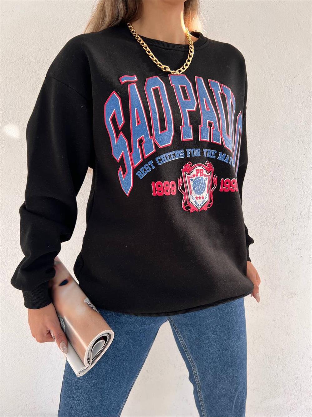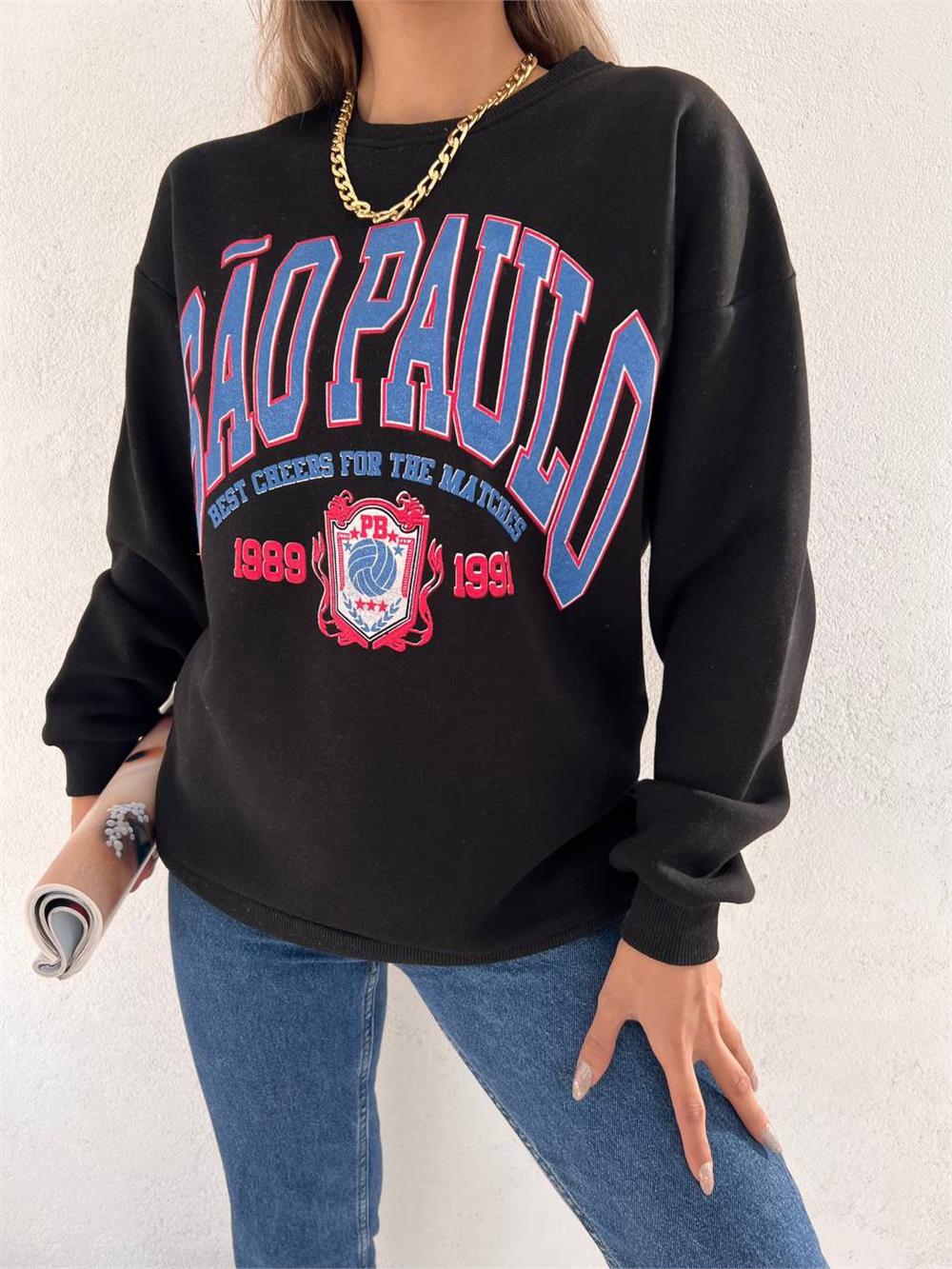 Round Neck Text Printed Polar Sweat -Black (358-9990-R01)