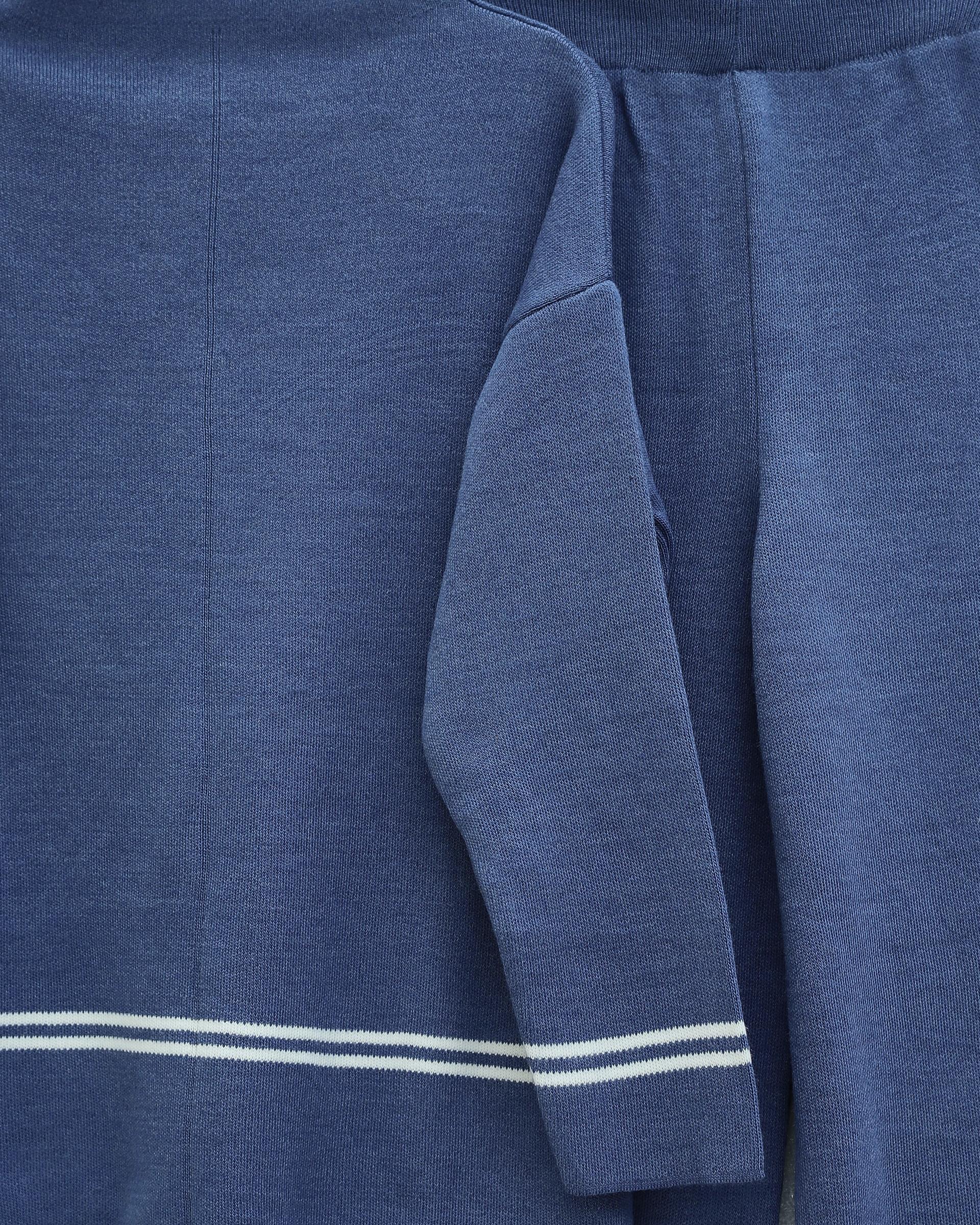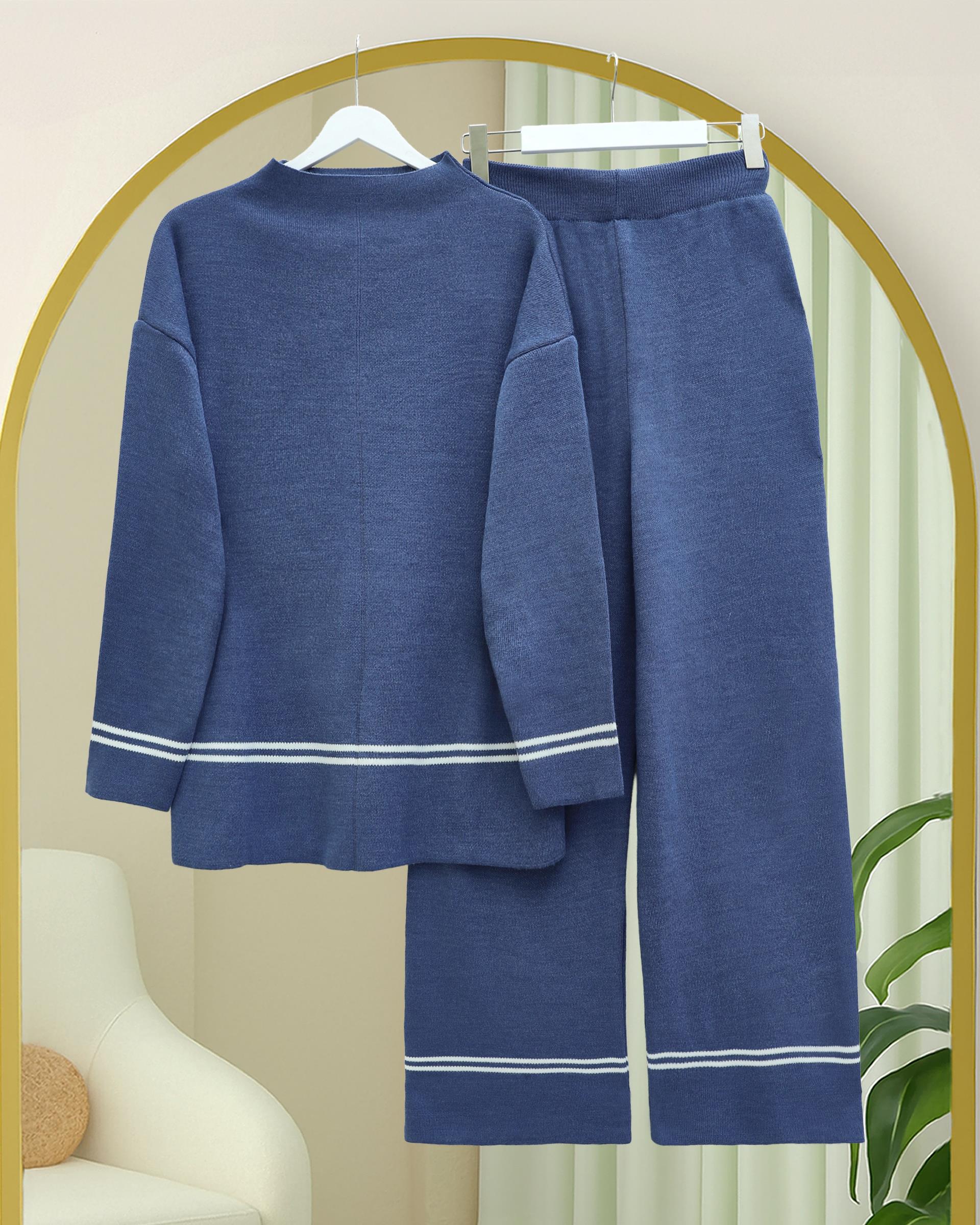Eteği Ve Kolu Çizgili Triko Takım -İndigo (384-301-R21)