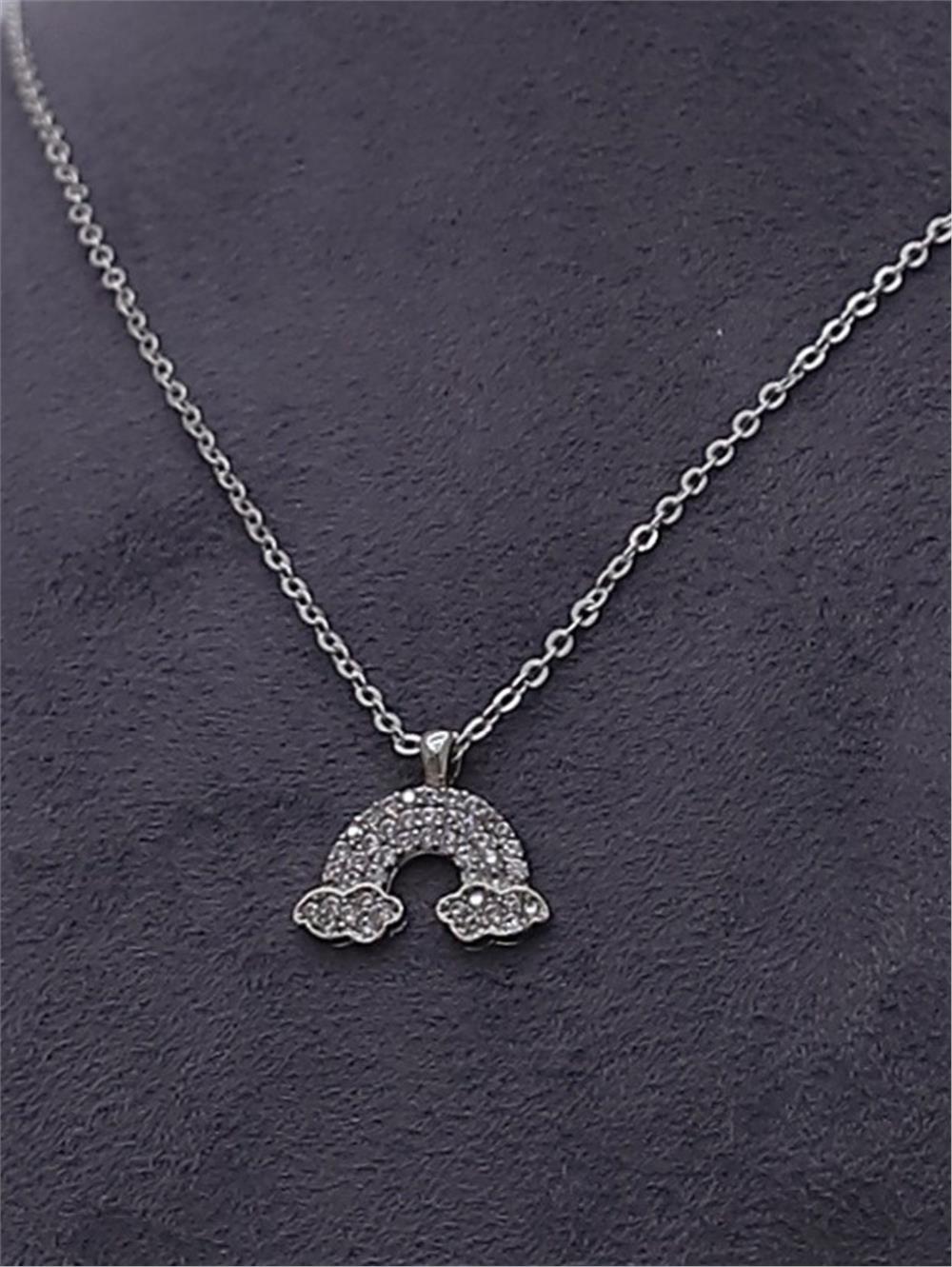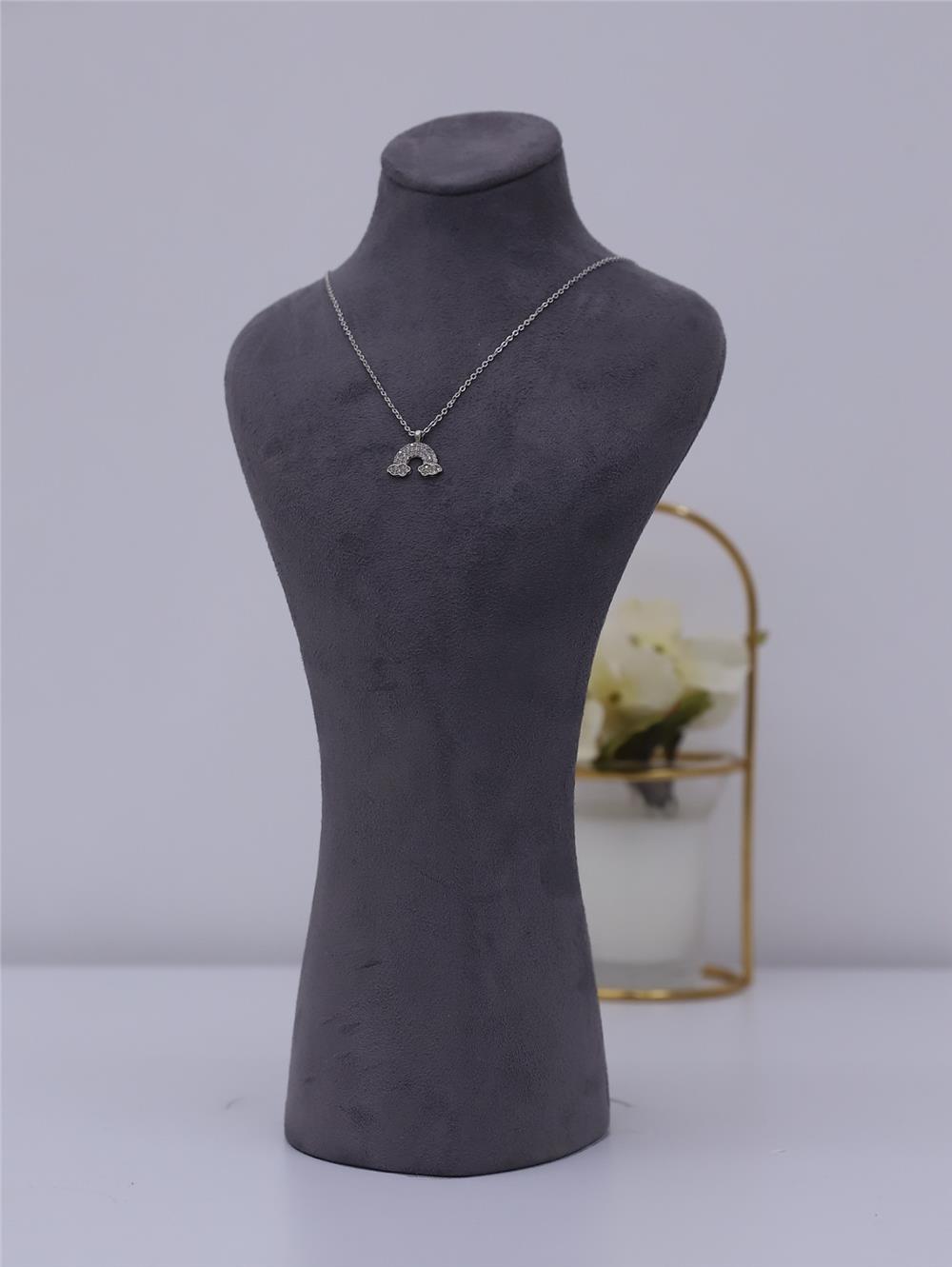 Gümüş Rengi Figür Desenli Solmaz Zirkon Kolye