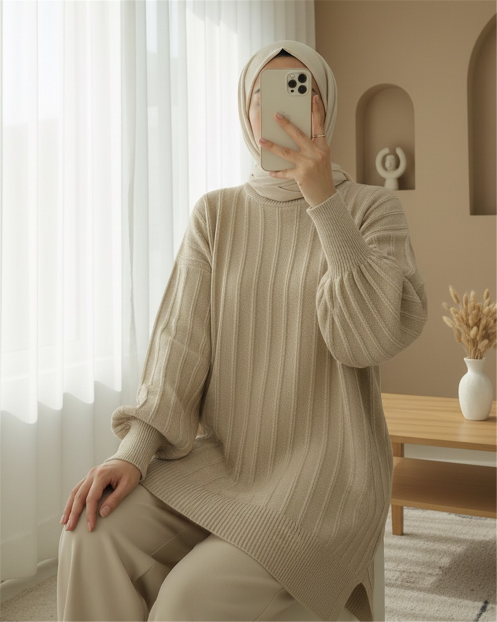 Fitilli Yırtmaçlı Yumoş Triko Tunik, yumuşacık dokusu ve fitilli yapısıyla sıcak, rahat ve modern bir stil sunar. Yırtmaç detayları sayesinde günlük kombinlere şıklık katar.
