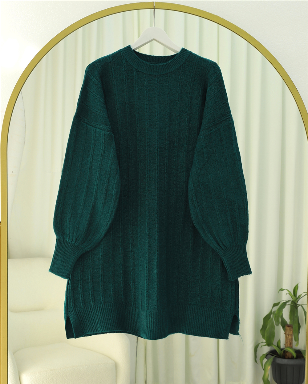 Fitilli Yırtmaçlı Yumoş Triko Tunik -Zümrüt (295-6026-R17)
