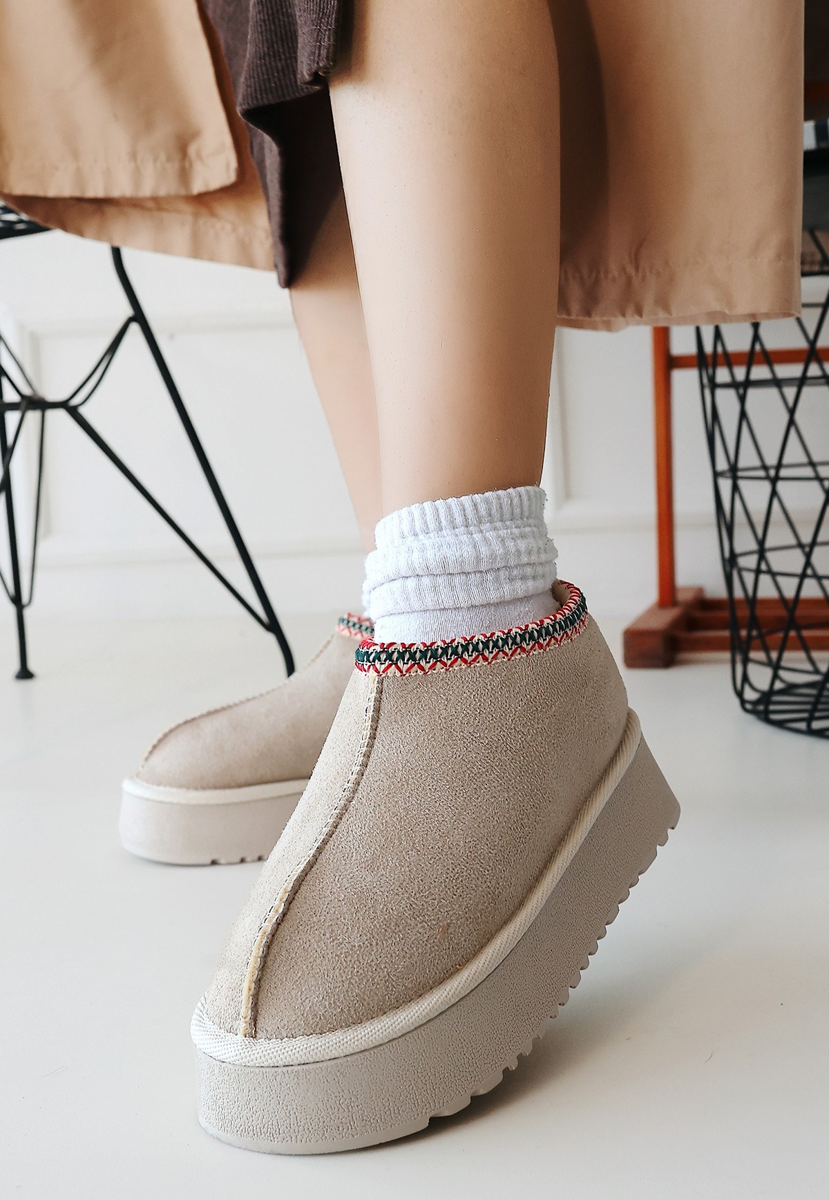 Foyk Süet Bot -Bej modeli, kadın bot kategorisinde, bej rengiyle soğuk havalarda hem şıklık hem de fonksiyonellik arayanlar için uygun bir seçenektir.