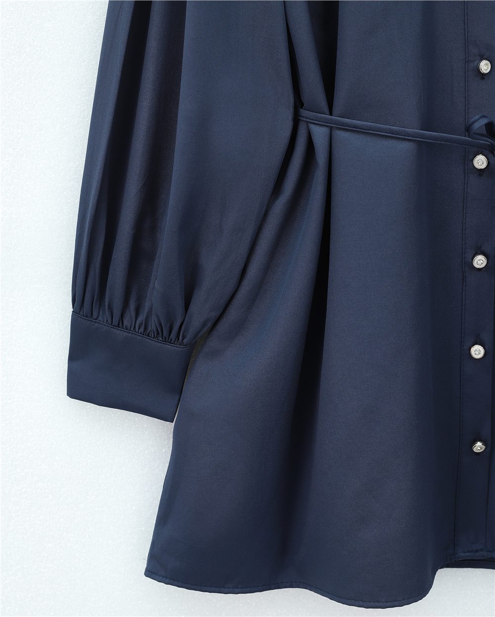 Geniş Yakalı Biyeli Kemerli Düğmeli Gömlek -Laci (307-0079-R03)
