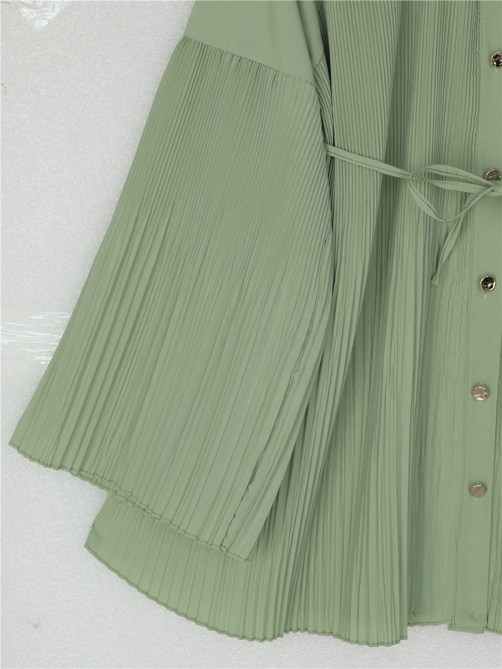 Gold Düğmeli Önü Ve Kolları Pliseli Bağcıklı Gömlek -A.Yeşil (433-10072-R69)