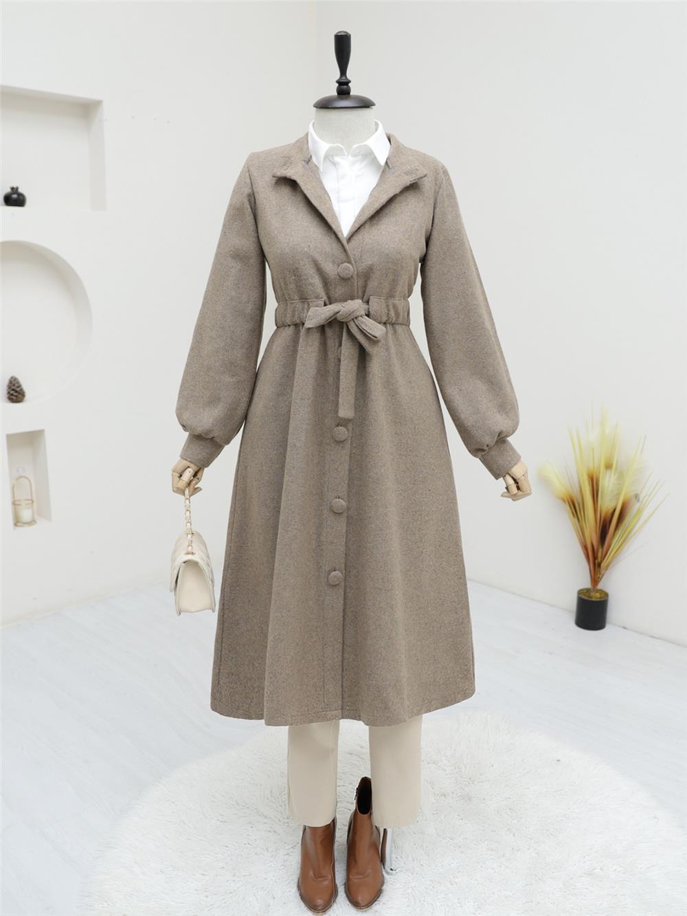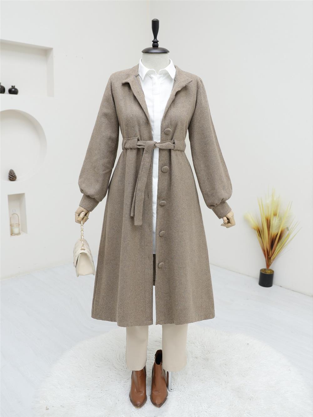 Önden düğmeli, kemerli, 2 cepli kaşe kaban modelimiz yeni sezonun en çok sevilen modelleri arasında yer almaktadır.