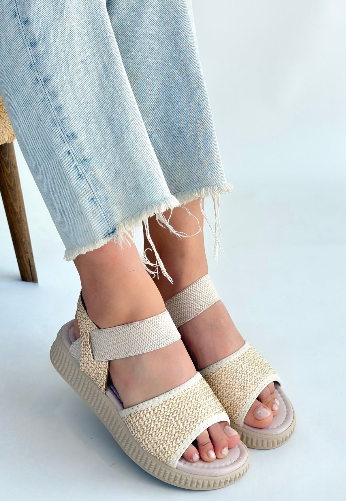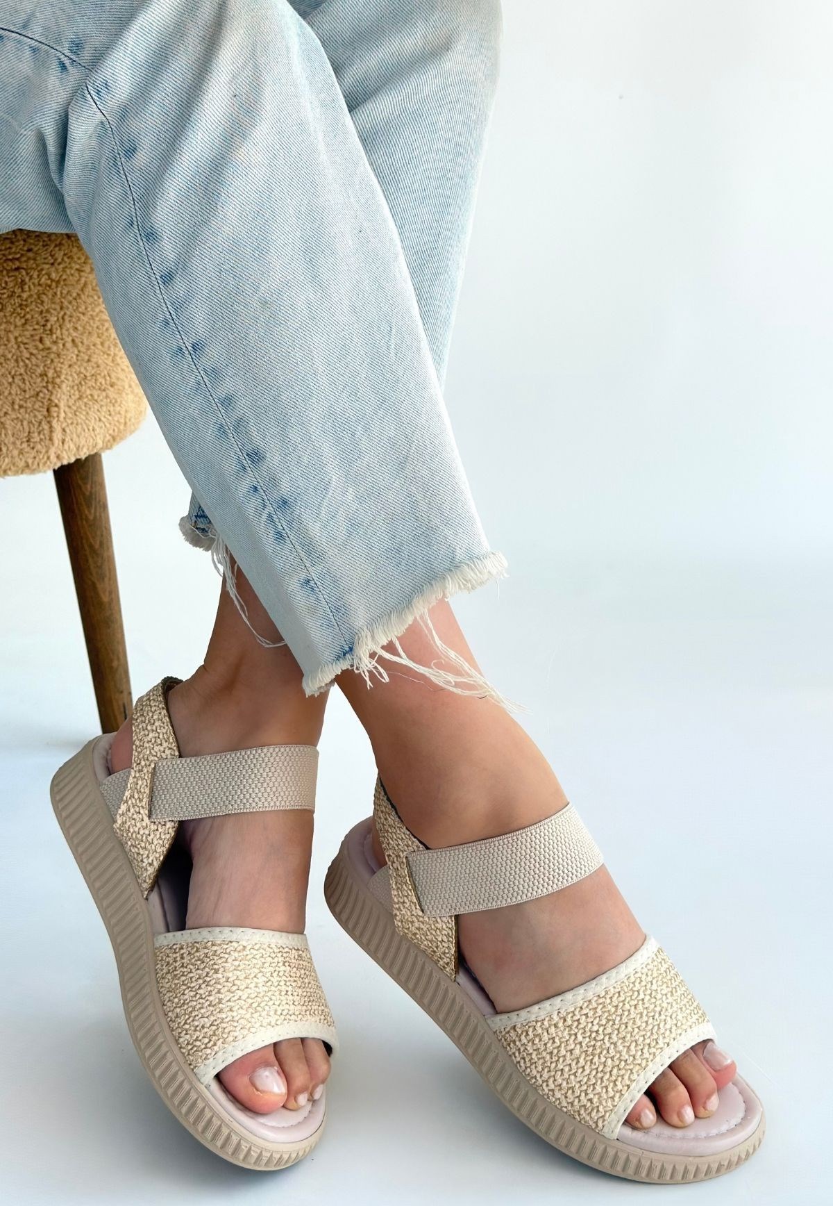 Jake Hasır Cilt Sandalet -Bej modeli, kadın sandalet kategorisinde, bej rengiyle sıcak havalarda hem rahat hem de şık bir kullanım sunan hafif bir seçenektir.