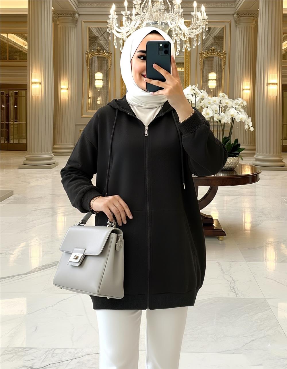 Kanguru Cepli Kapşonlu Fermuarlı Sweat -Siyah (362-4248-R01)