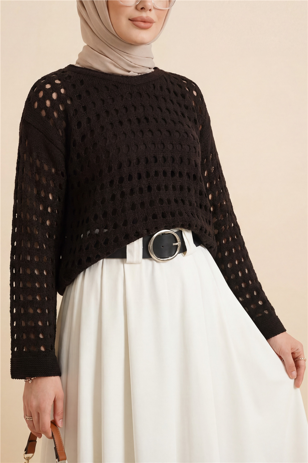 Kayık Yaka Ajurlu Triko Kazak -K. Kahve (109-0987-R54)