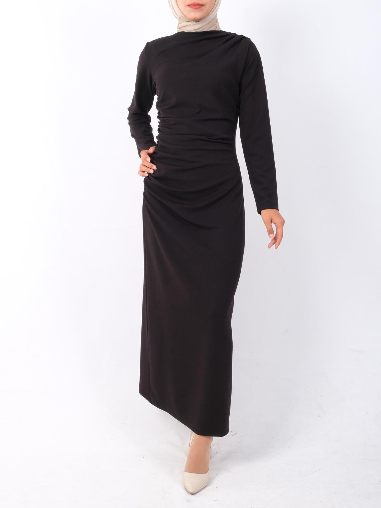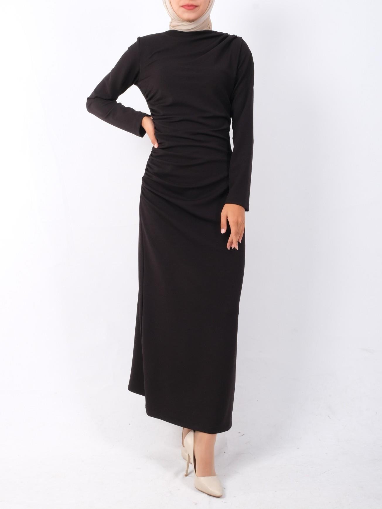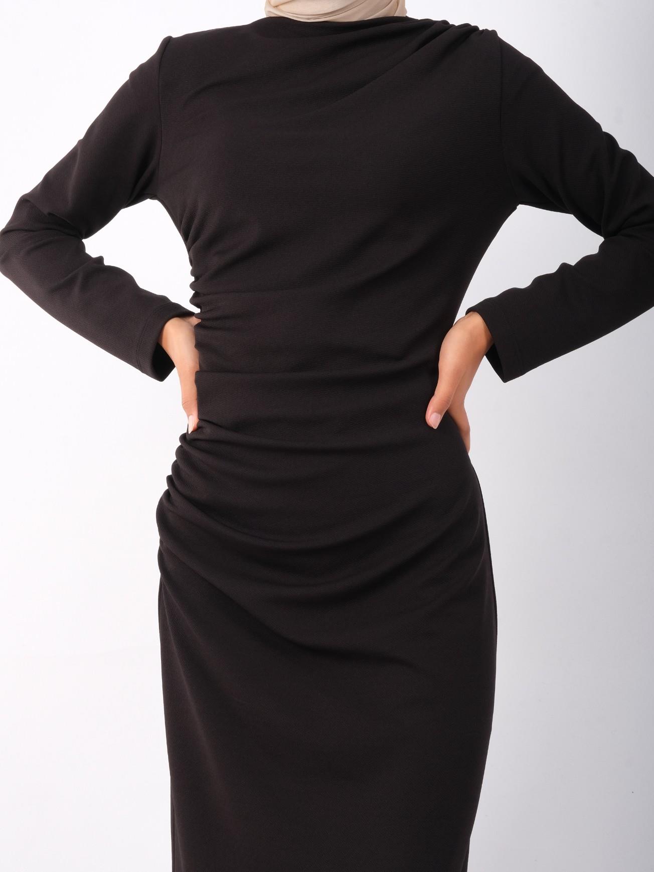 Kayık Yaka Yandan Drapeli Örme Krep Elbise, zarif ve sofistike bir şıklık sunar. Kayık yaka tasarımı, boyun çizgisini zarif bir şekilde vurgularken, yandan drapeli detay elbiseye şıklık ve hareket katmaktadır. Örme krep kumaşı, vücuda oturan yapısı ve esnekliğiyle rahatlık sağlar. Hem gündelik kullanım hem de özel davetlerde rahatlıkla tercih edilebilecek bu elbise, şıklığınızı ve zarafetinizi yansıtır. Kayık Yaka Yandan Drapeli Örme Krep Elbise, gardırobunuzda vazgeçilmez bir parça olacak.