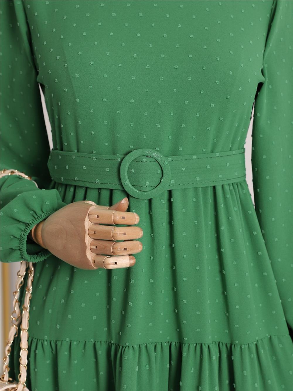 Eteği 3 Katlı Kemerli Yeşil Pıtpıt Ayrobin Elbise