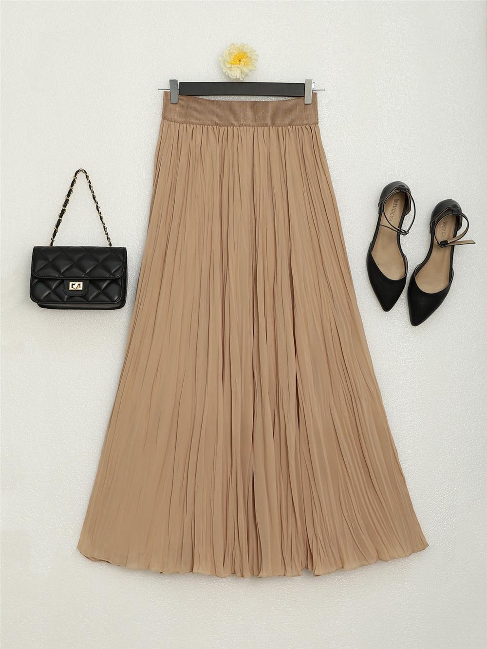 Kraşlı Astarlı Bol kesim Şifon Etek -Açık Vizon (207-4073-R51)