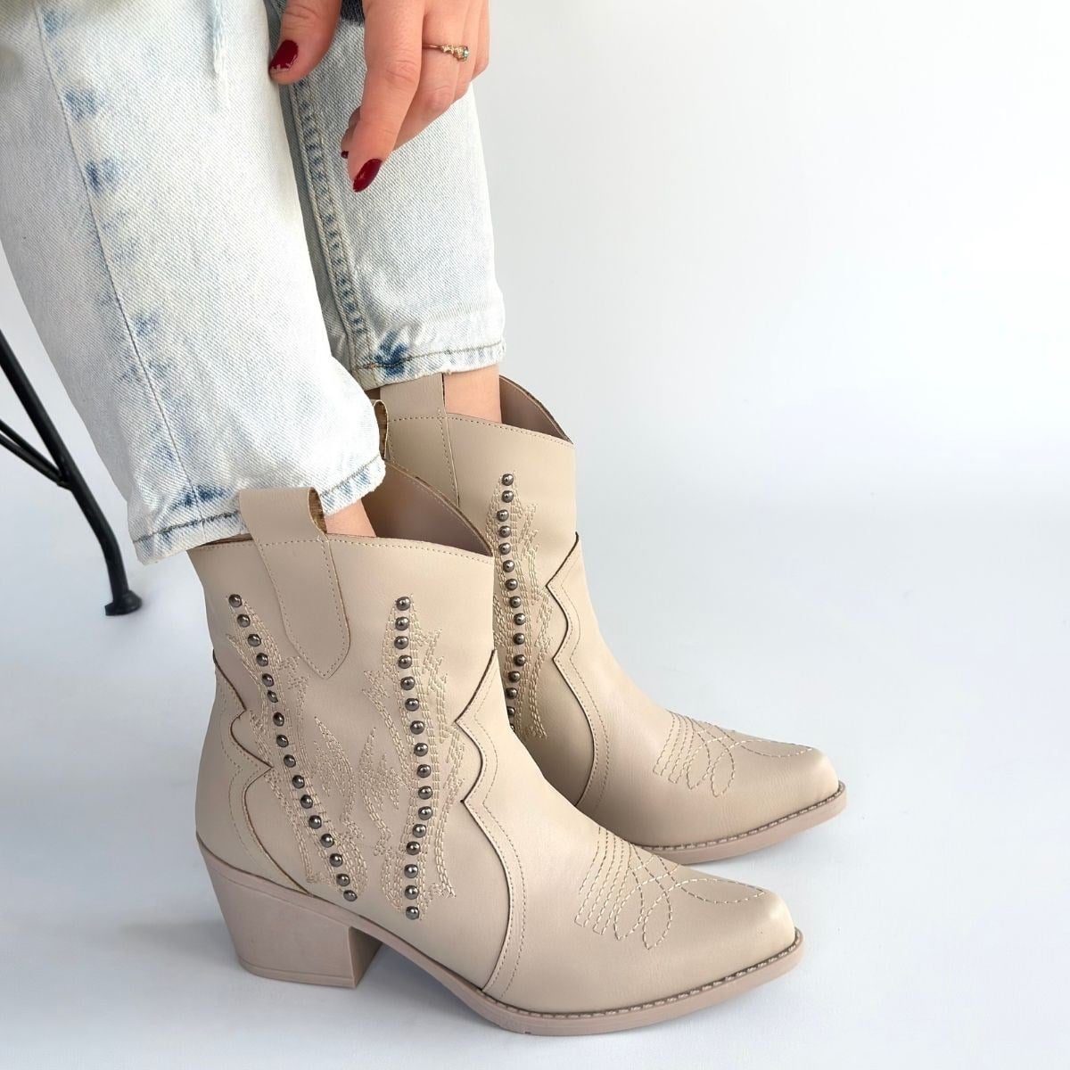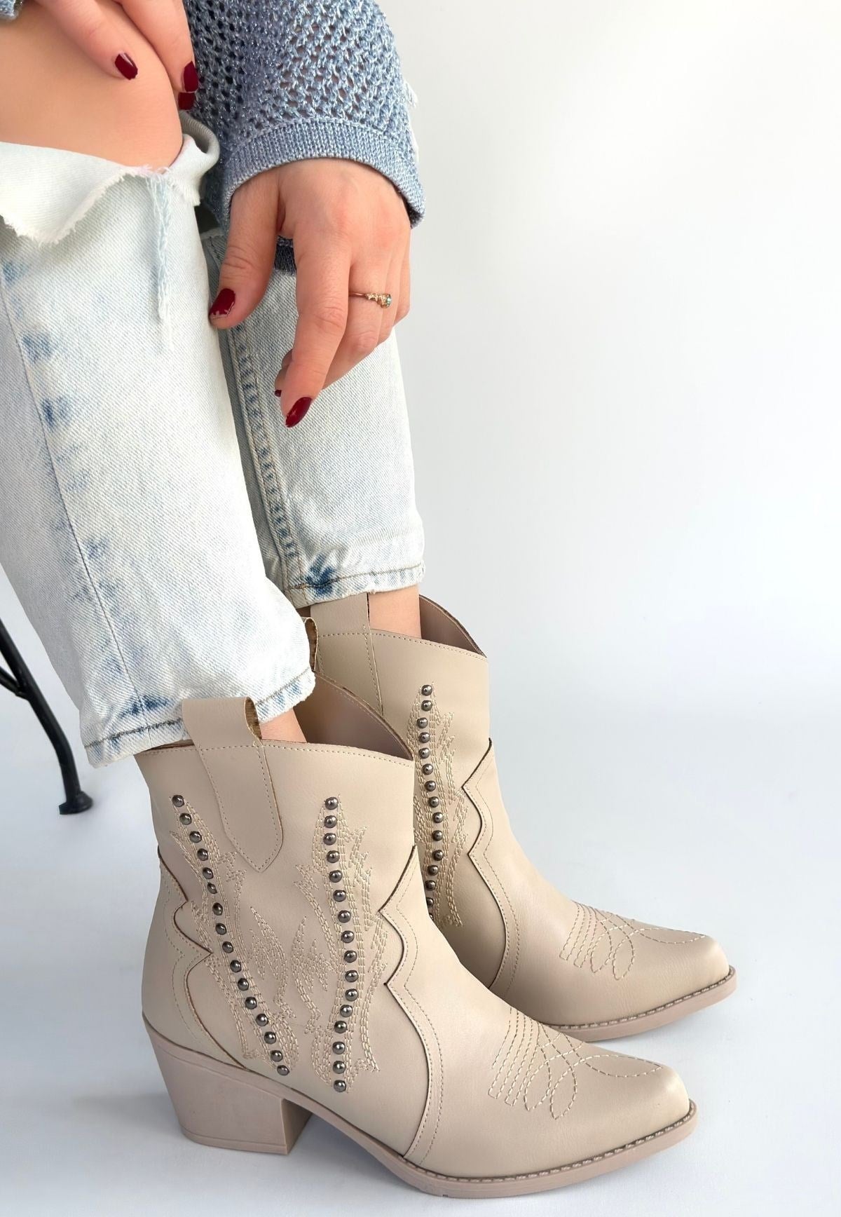 Matin Cilt Topuklu Bot -Bej modeli, kadın bot kategorisinde, bej rengiyle soğuk havalarda hem şıklık hem de fonksiyonellik arayanlar için uygun bir seçenektir.