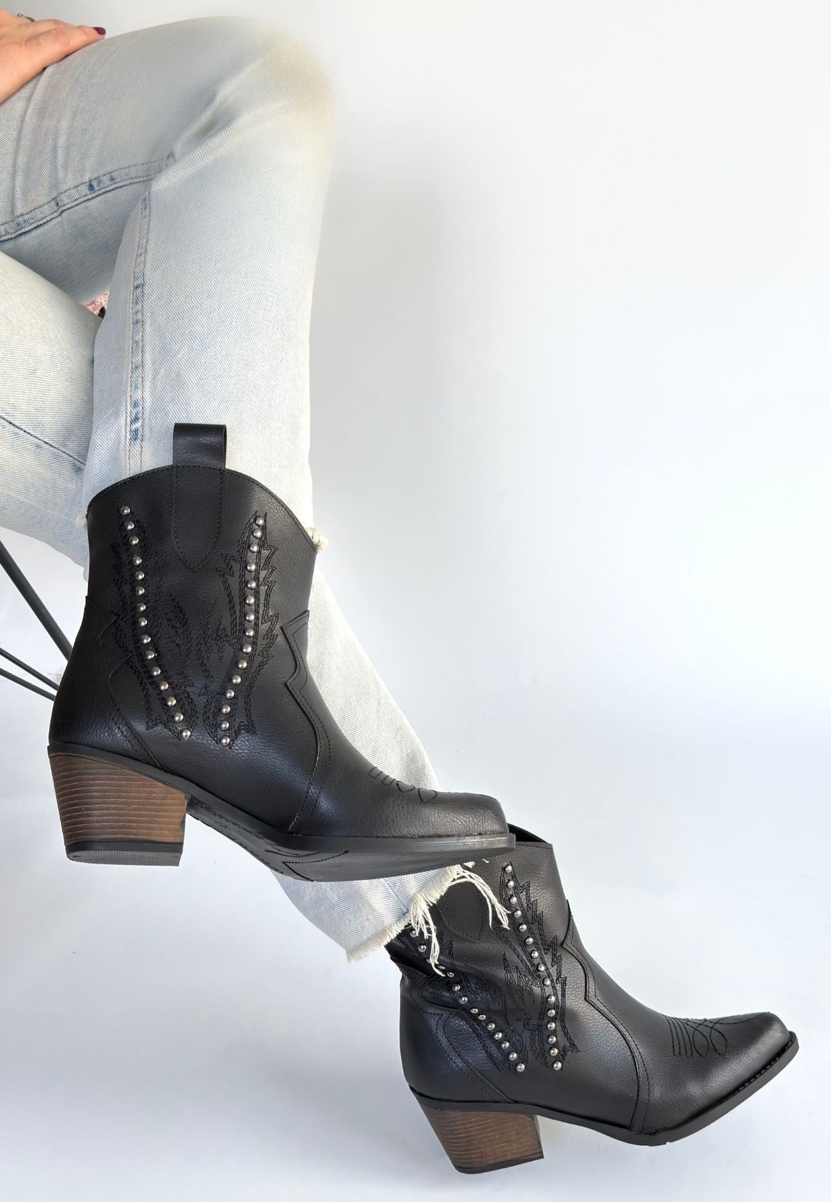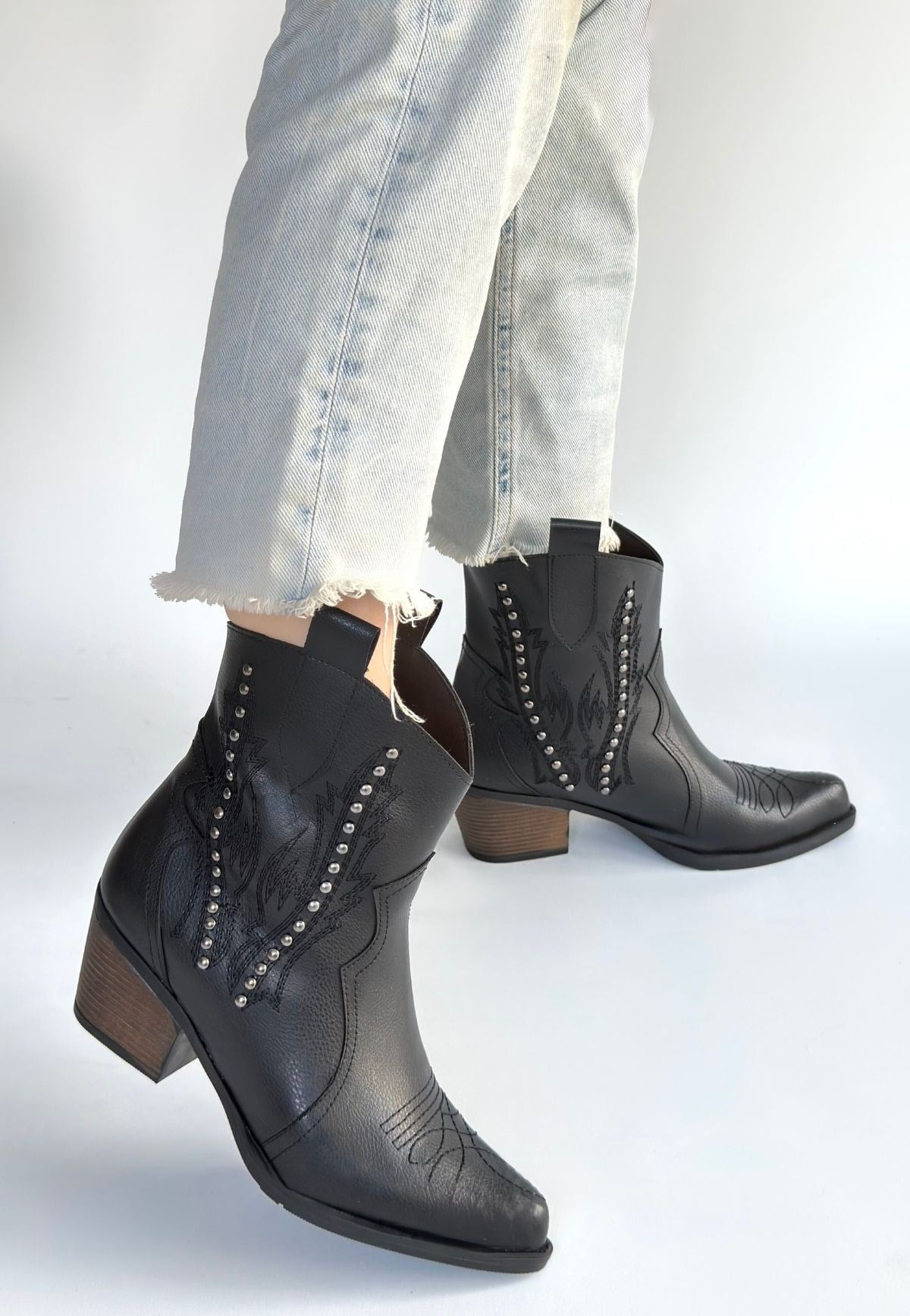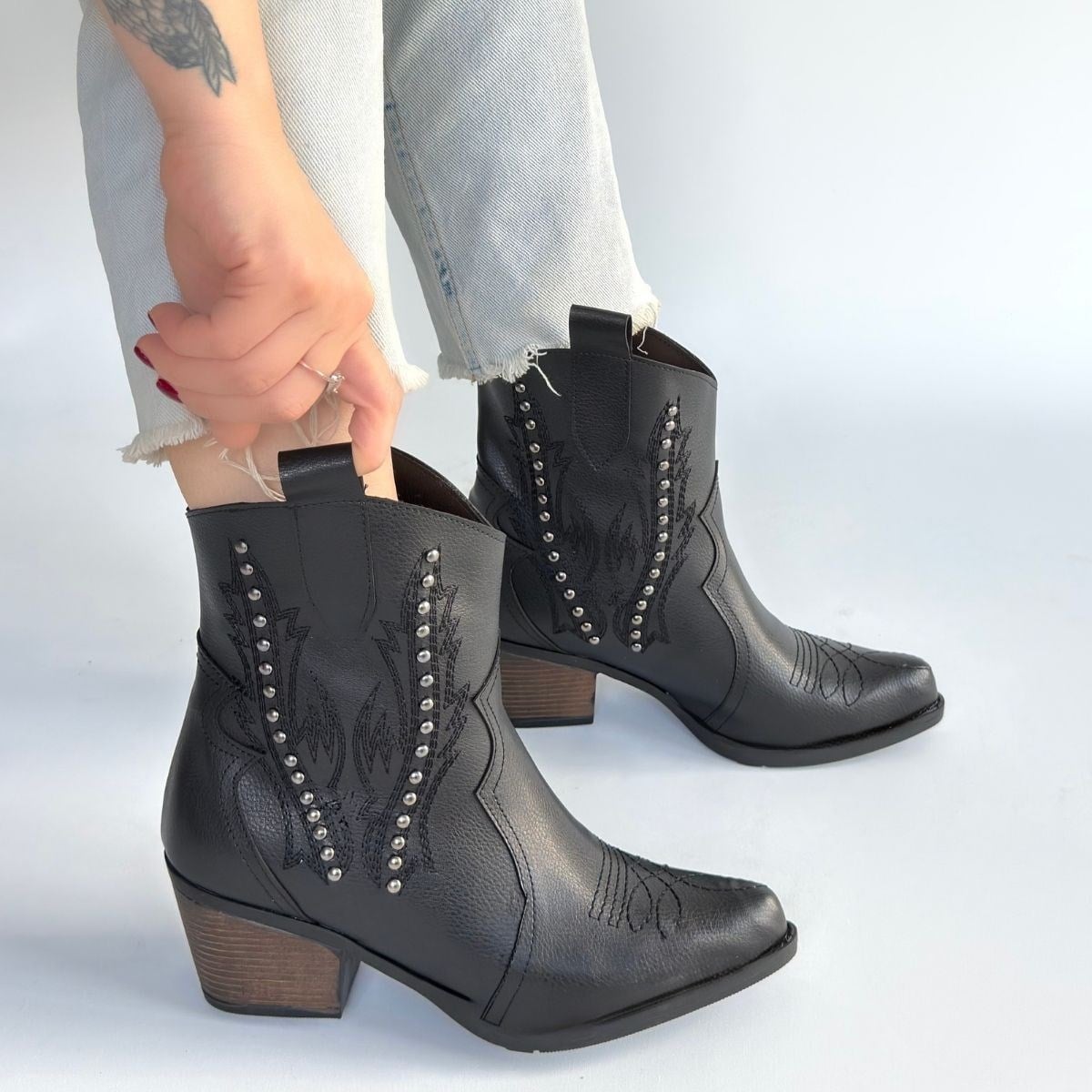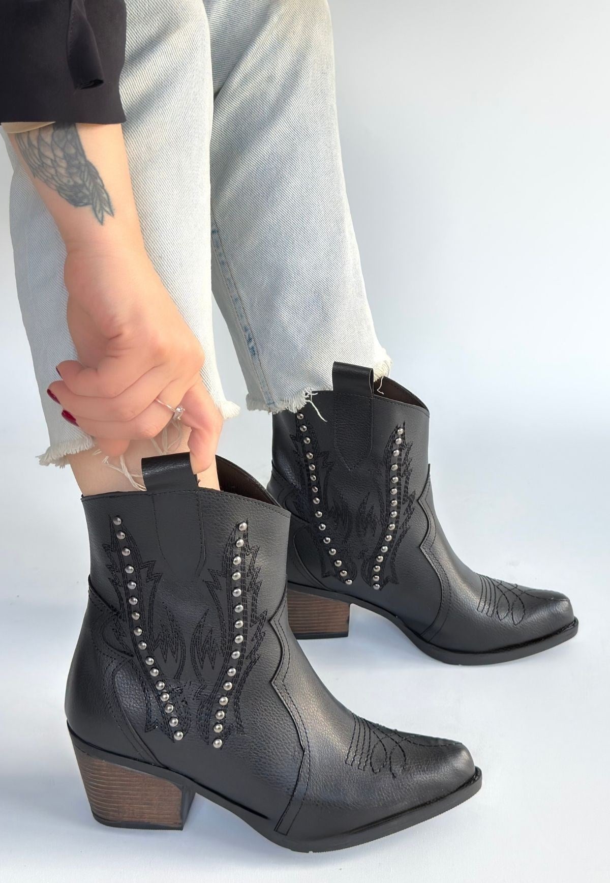 Matin Cilt Topuklu Bot -Siyah modeli, kadın bot kategorisinde, siyah rengiyle soğuk havalarda hem şıklık hem de fonksiyonellik arayanlar için uygun bir seçenektir.
