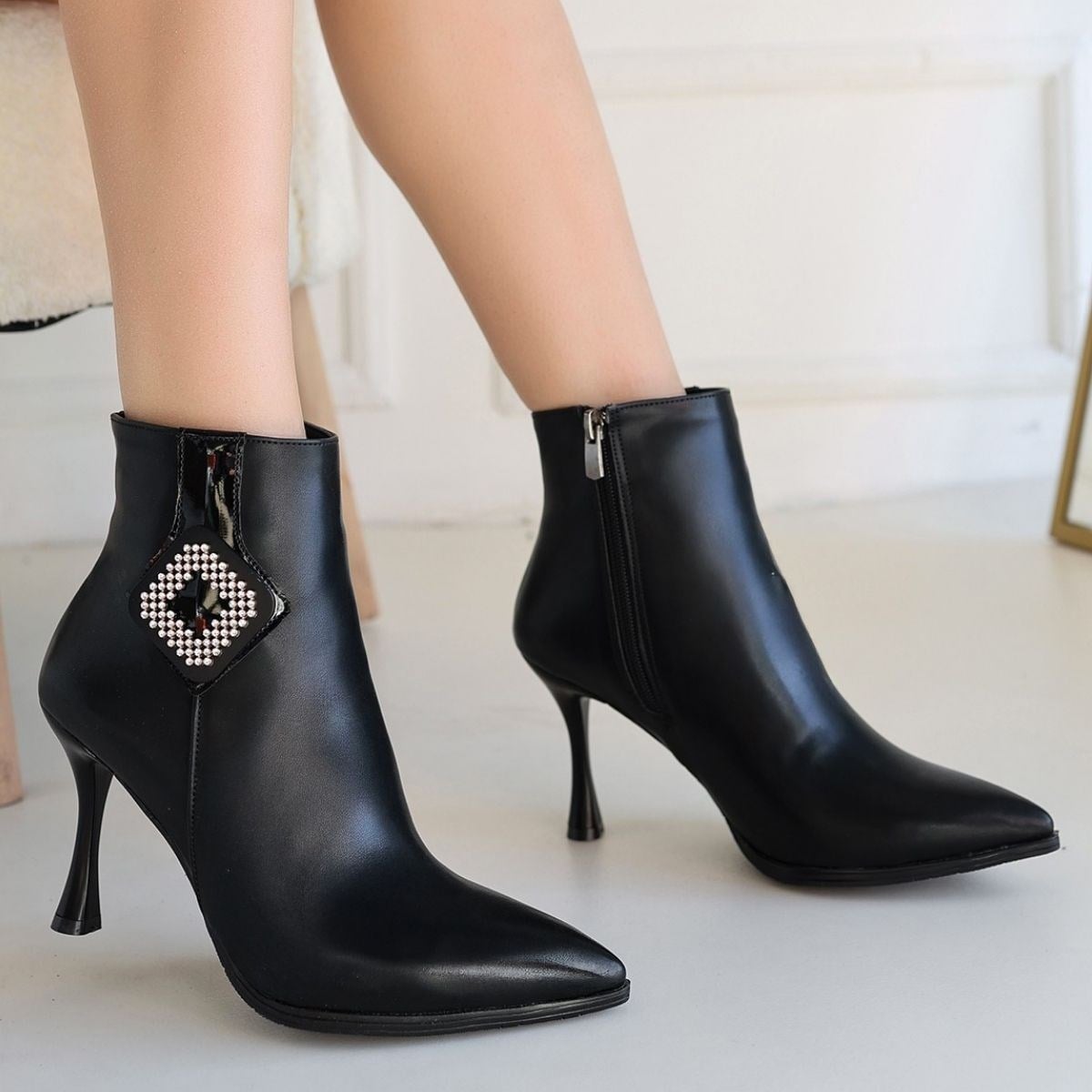 Moose Cilt Topuklu Bot -Siyah modeli, kadın bot kategorisinde, siyah rengiyle soğuk havalarda hem şıklık hem de fonksiyonellik arayanlar için uygun bir seçenektir.