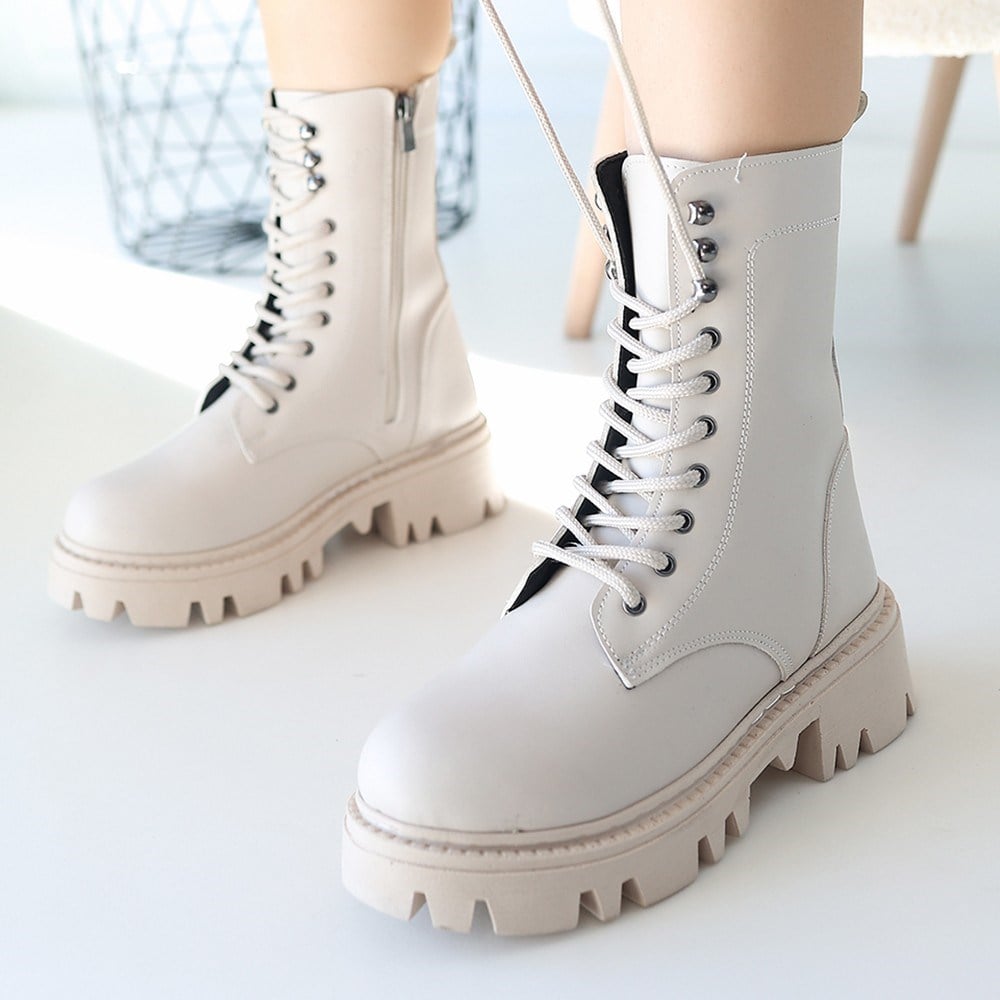 Neole Cilt Bağcıklı Bot -Bej modeli, kadın bot kategorisinde, bej rengiyle soğuk havalarda hem şıklık hem de fonksiyonellik arayanlar için uygun bir seçenektir.