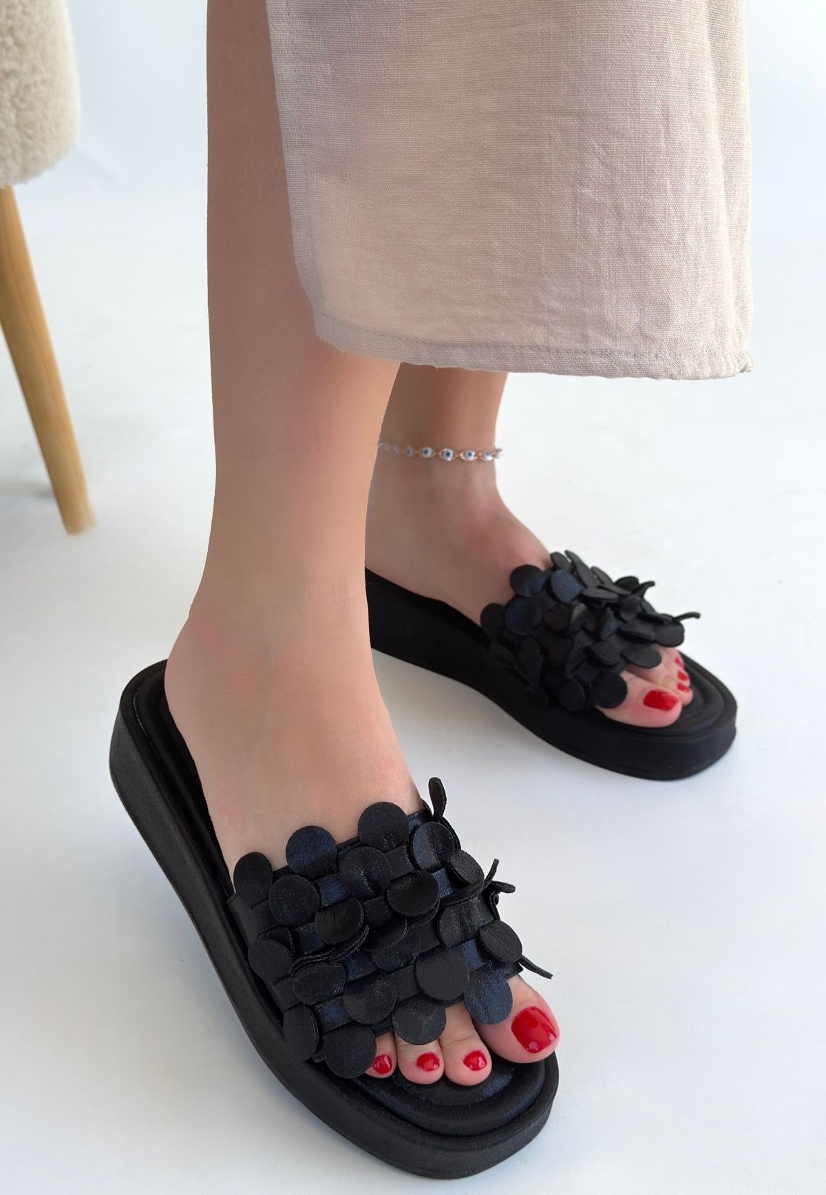 Norx Cilt Terlik -Siyah modeli, kadın terlik kategorisinde, siyah rengiyle günlük ve özel gün kombinlerinde kullanılabilecek şık bir seçenektir.