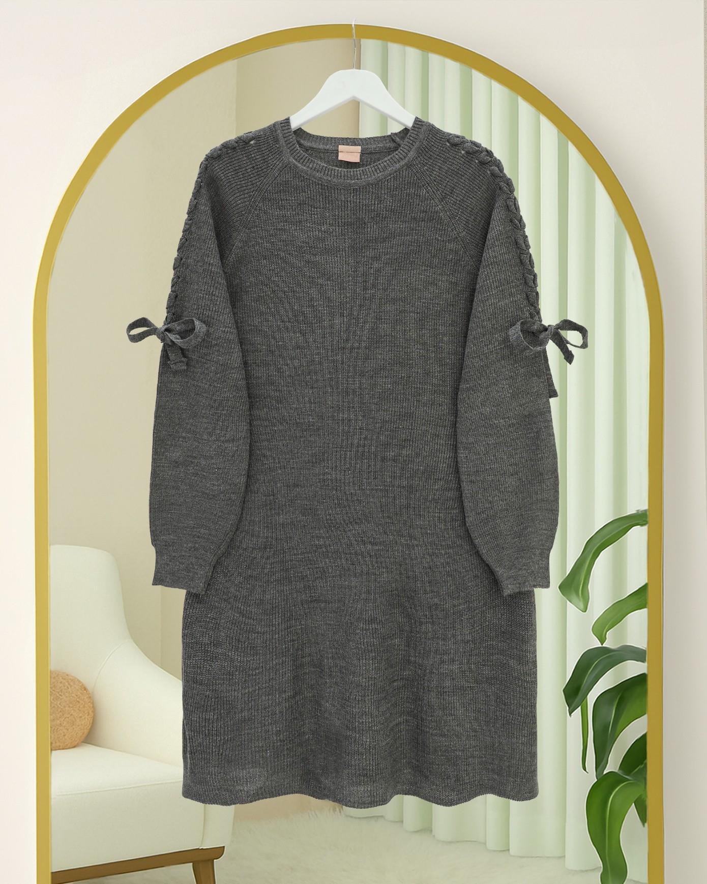 Omuzu Saç Örgülü Salaş Triko Tunik -Füme (295-1281-R18)