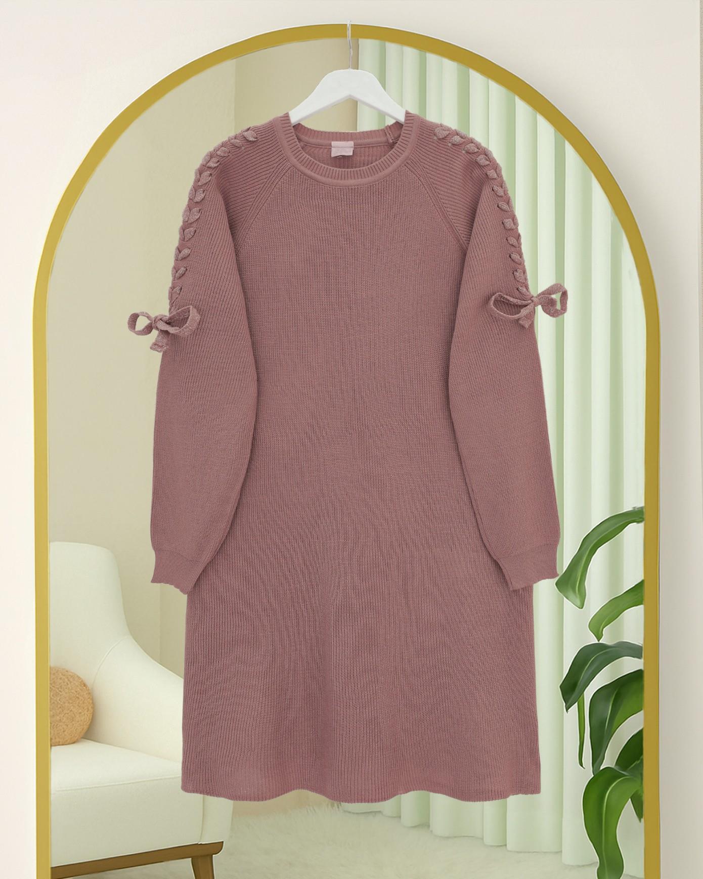 Omuzu Saç Örgülü Salaş Triko Tunik -G.Kurusu (295-1281-R27)